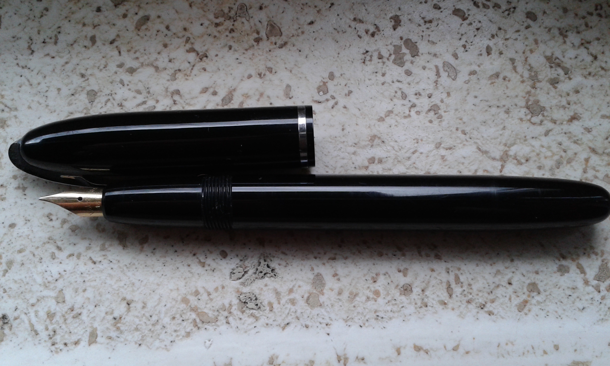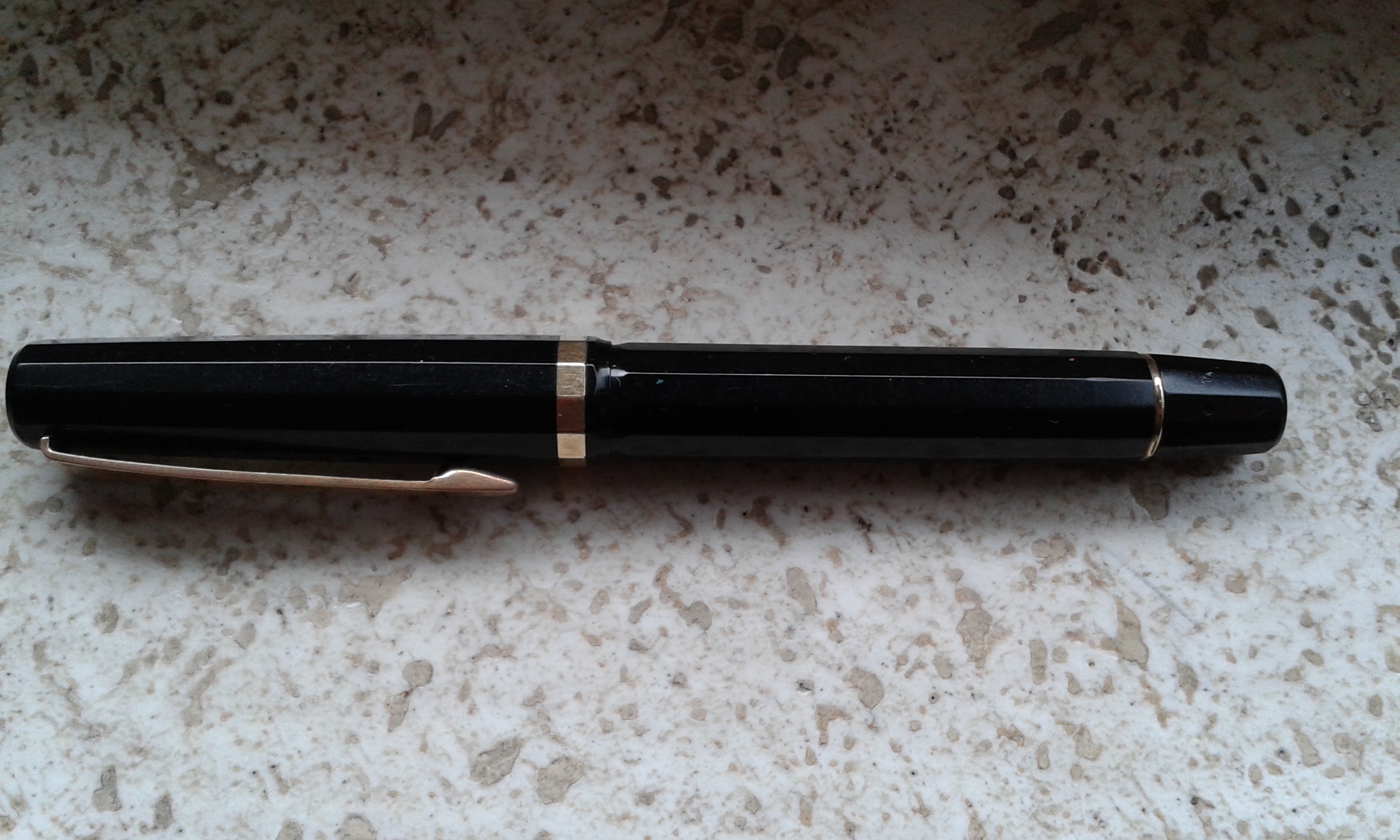 Insieme ad altre penne prese nel solito mercatino della mia zona ho trovato questo modello Waterman's di cui ignoro modello e data di produzione ha il pennino marcato Waterman's in oro 18k, ma è priva del sistema di caricamento anche se penso che sia pistone, all'interno è vuota, il fondello si svita.