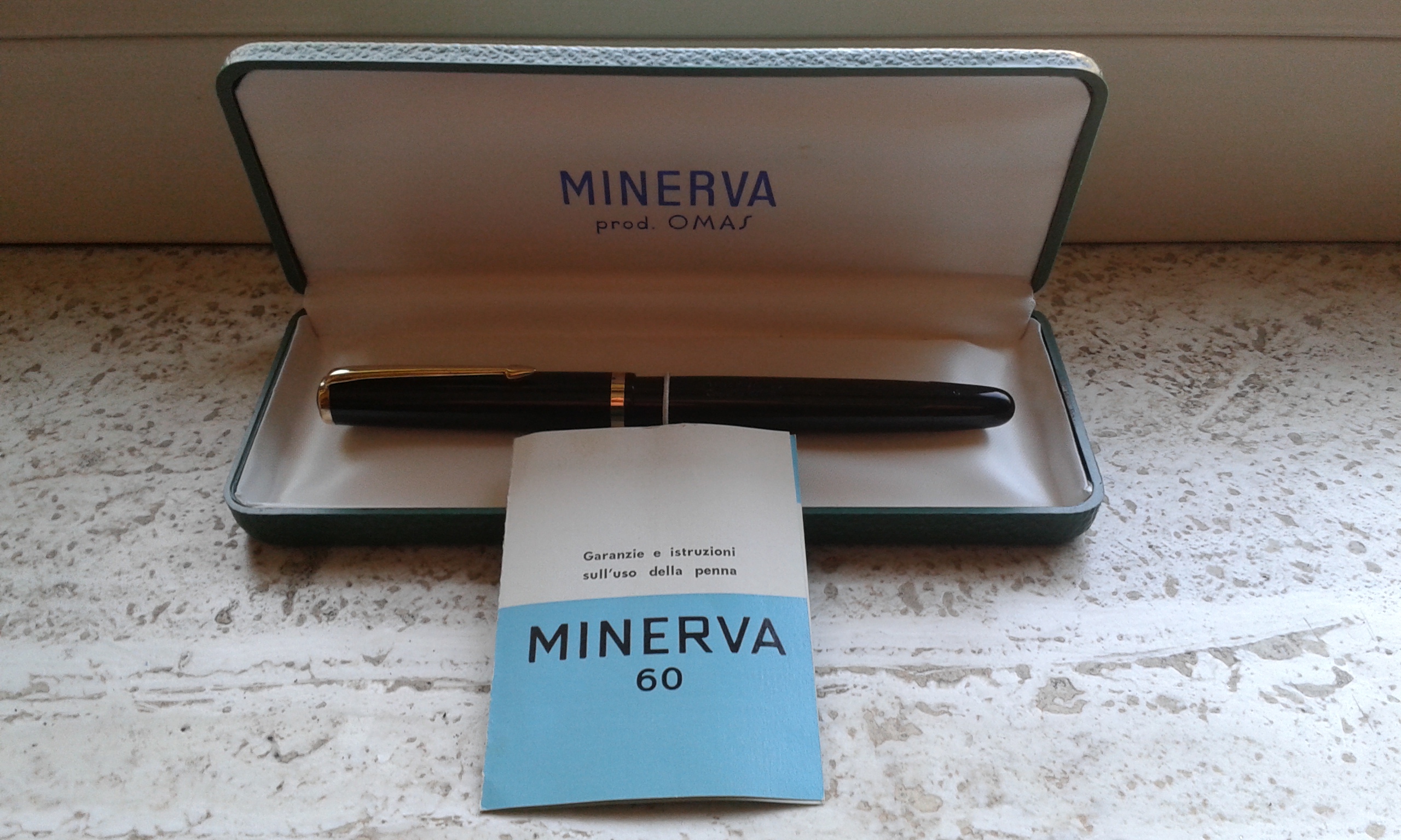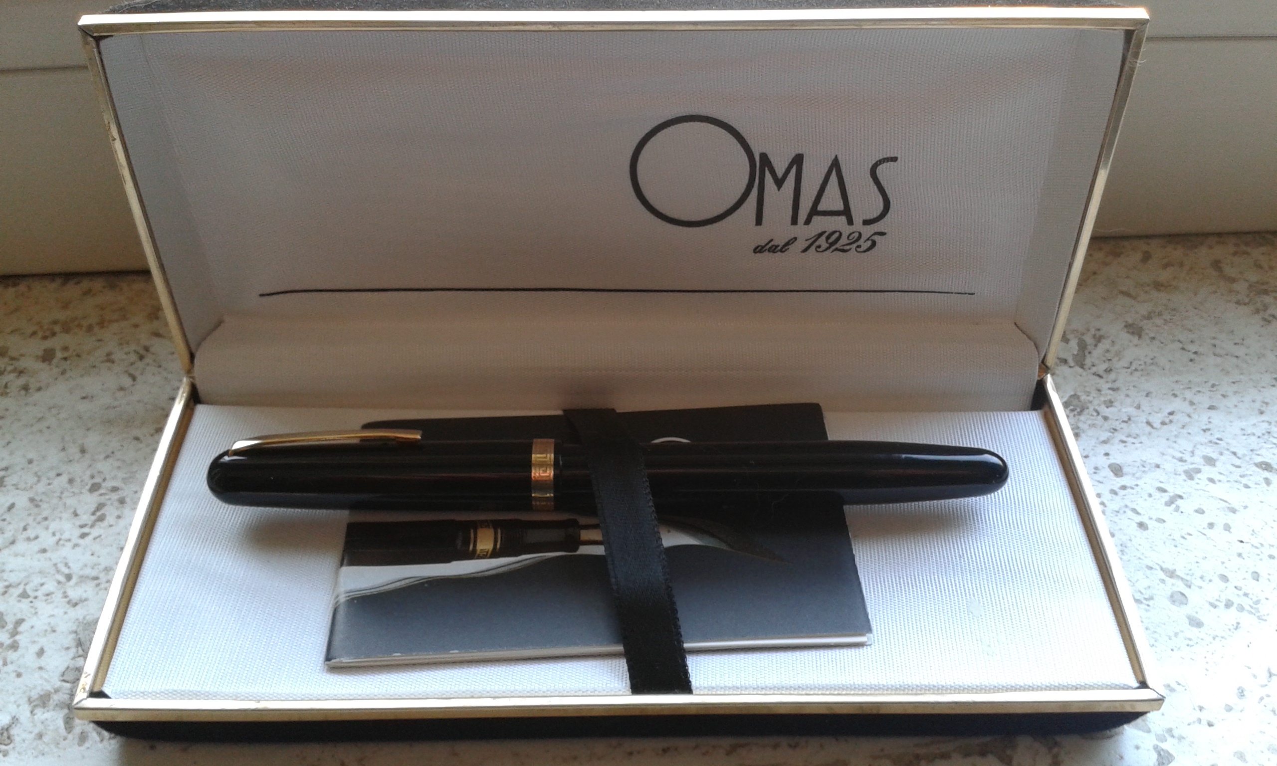 L'astuccio Omas è anni 70, la penna ed il foglietto è degli anni 90.