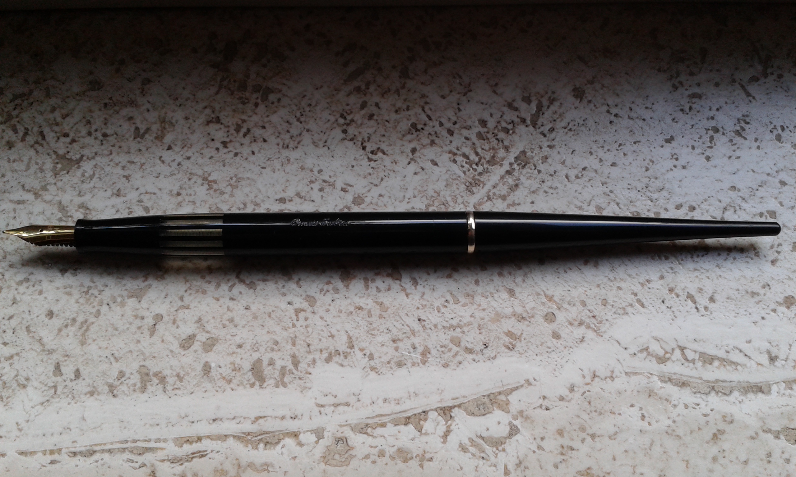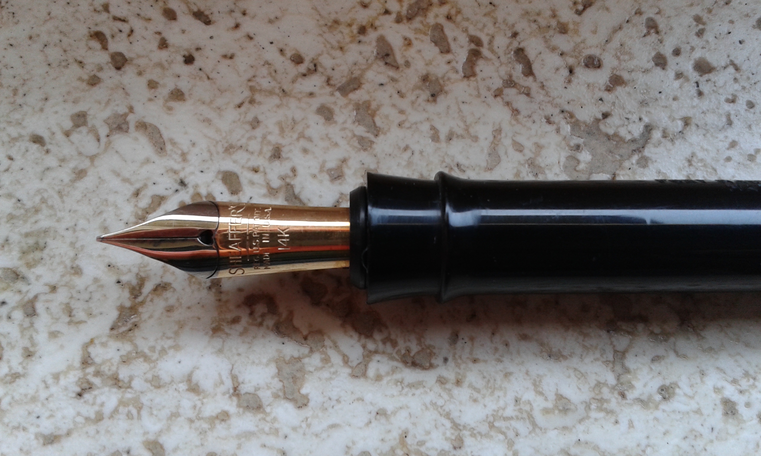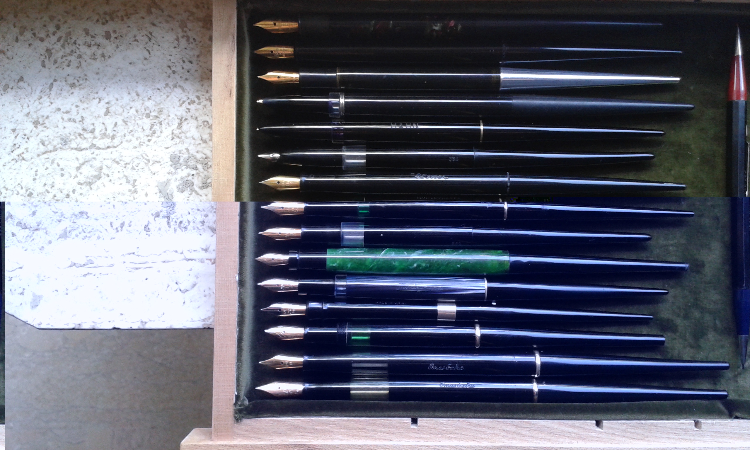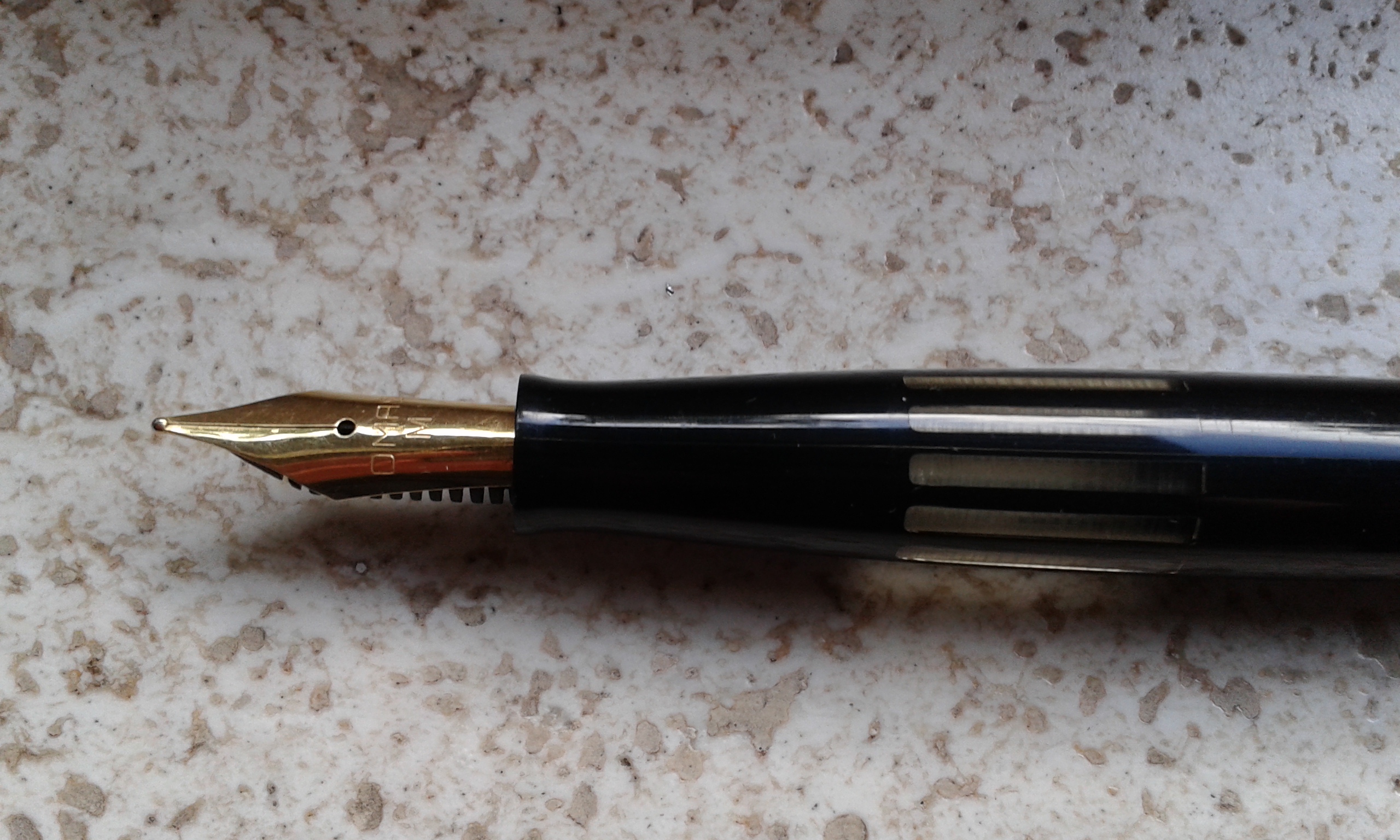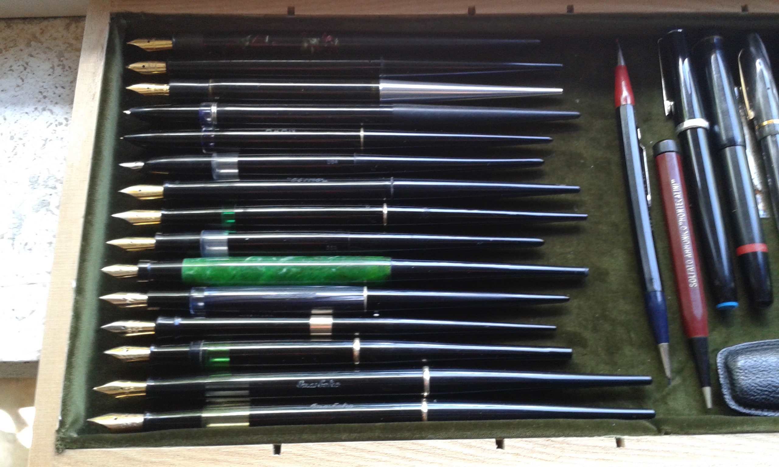 Penso che i più rari che ho sono uno Sheaffer (non sono riuscito a capire la modalità di caricamento inchiostro), ha un pennino marchiato in oro 585 e un Pelikan a stantuffo con pennino oro 585 che non avevo mai visto fino adesso.
