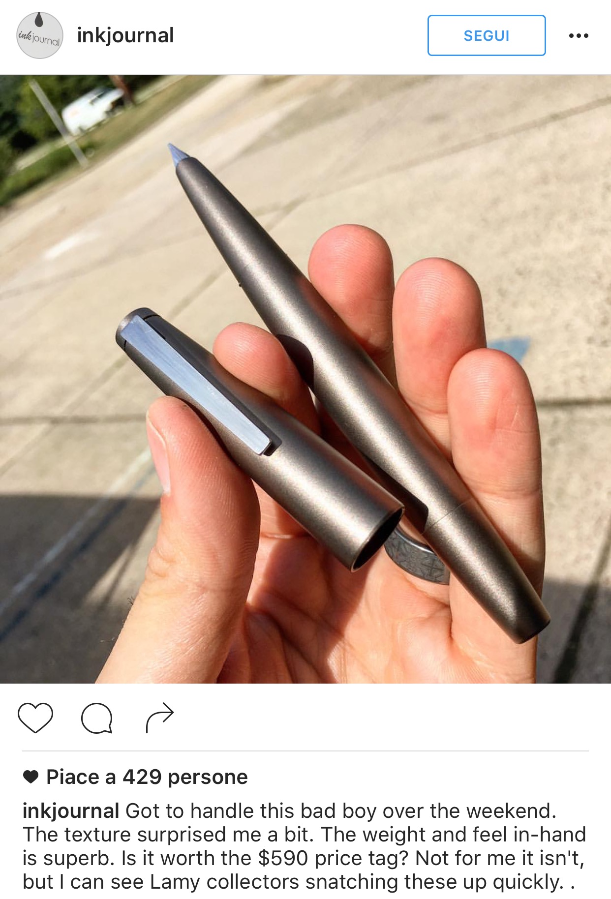 Scherzi a parte: quando sono state pubblicate le prime immagini pubblicitarie, l'ho molto criticata ed ero quasi sicuro di non volerla acquistare. Poi: ho visto le prime foto vere (e mi sono piaciute!), ho cercato prezzi interessanti (e li ho trovati); ma sopratutto mi sono detto che la Lamy 2000 in metallo è una delle mie penne preferite da anni, una delle poche che non è stata praticamente mai tolta dalla rotazione e che non ho mai pensato di vendere. Non sapendo quanti modelli con pennino EF sarebbero stati disponibili sul totale di 2'000 stilografiche, ho preferito non aspettare (anche se verosimilmente non sarà esaurita in tempi brevi).