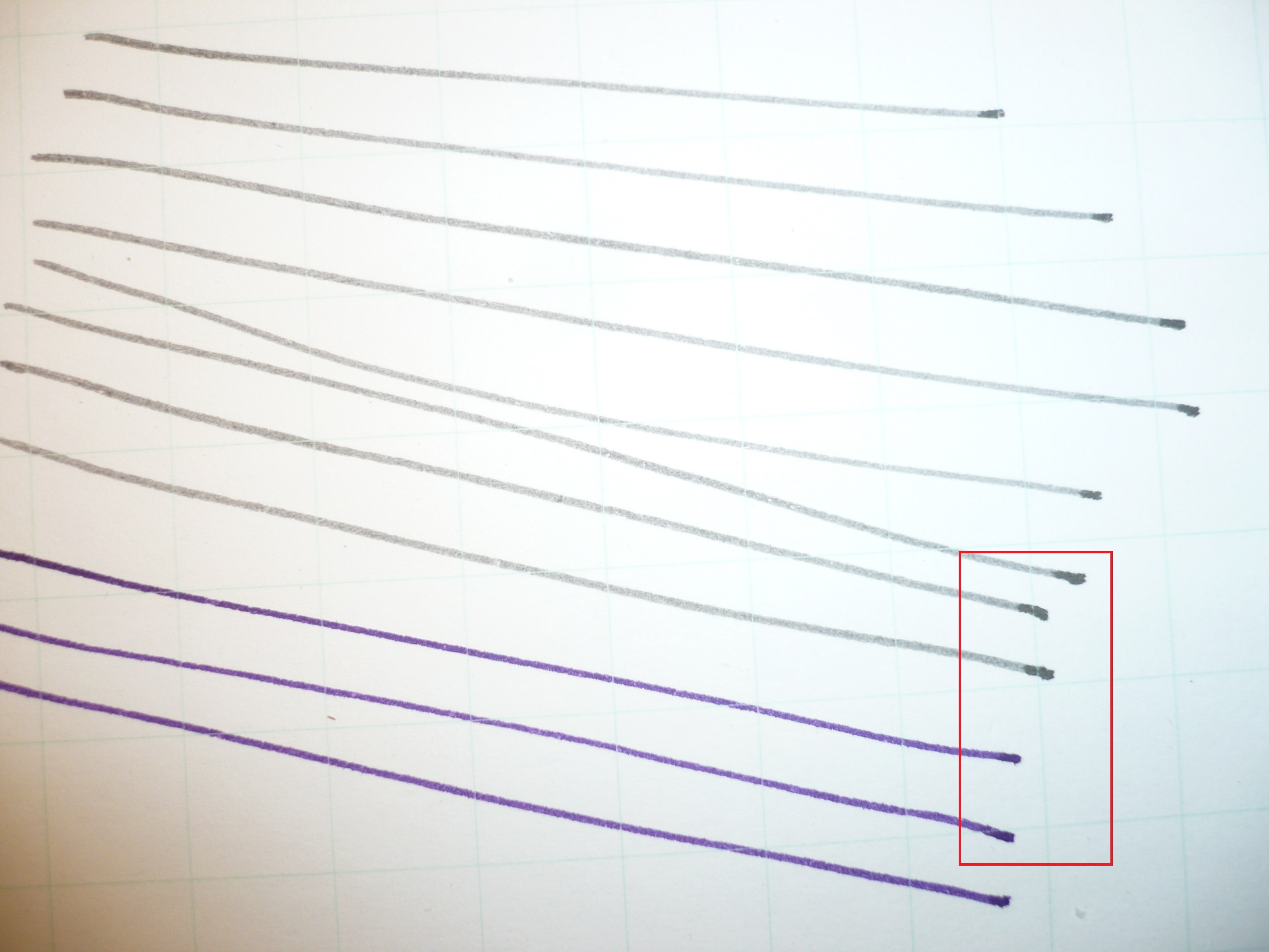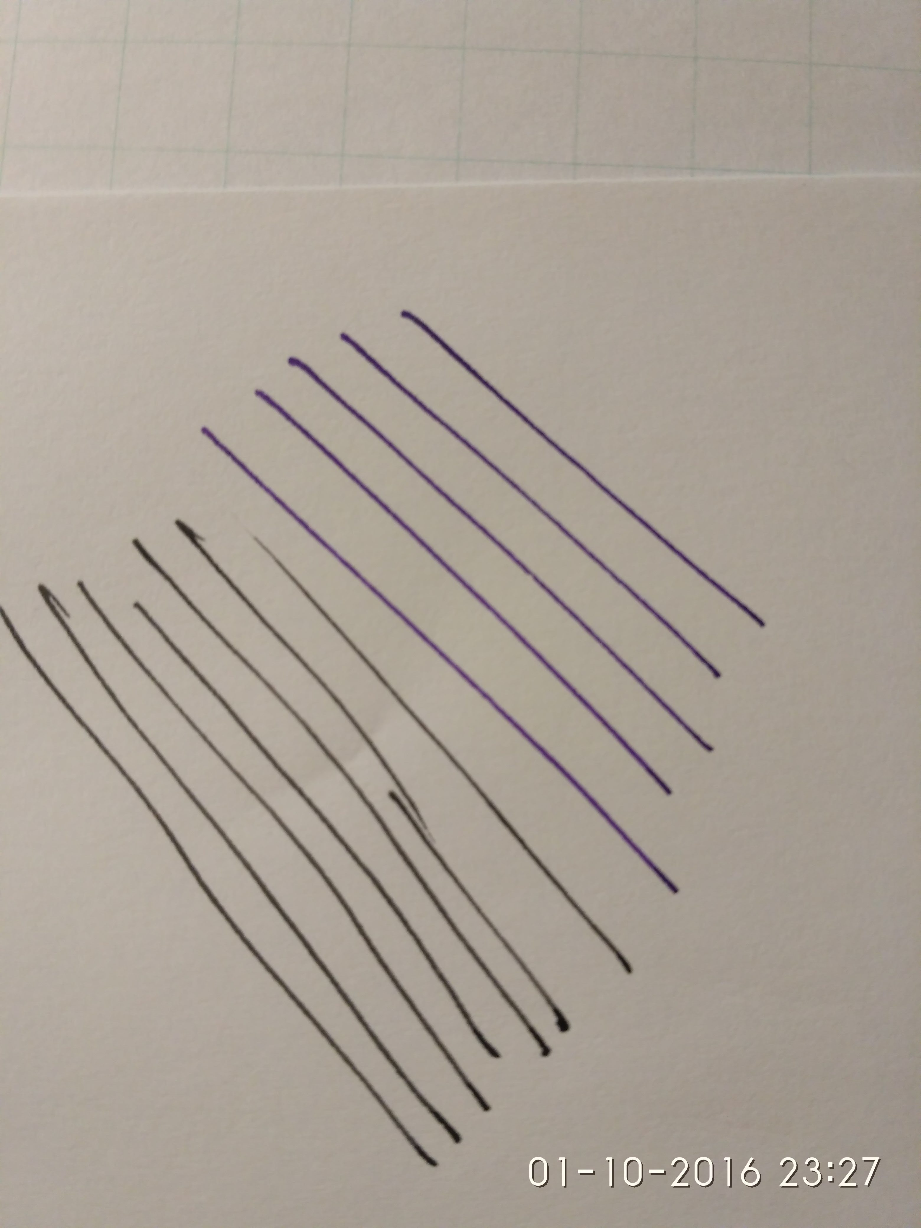 Il buon Nello mi ha detto che lavorando di mesh è riuscito a ottenere un ottimo risultato e quindi sicuramente seguirò il suo esempio, la mia domanda è, cosa provoca questo tratto stitico? rebbi troppo stretti? o cosa?. Premetto che passo sempre un negativo tra i rebbi prima di usare le nuove penne, in pratica hanno ricevuto lo stesso trattamento, solo che il delta stenta... il jinhao vola.. mi risulta che i delta siano realizzati dalla Bock quindi..
