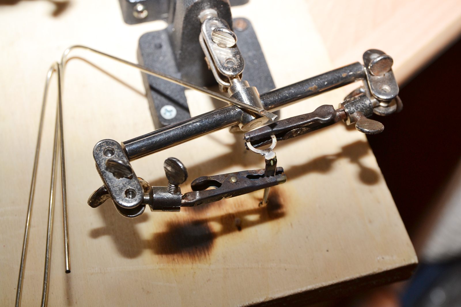 5) Braccetto con due coccodrilli per tenere le parti da saldare a contatto