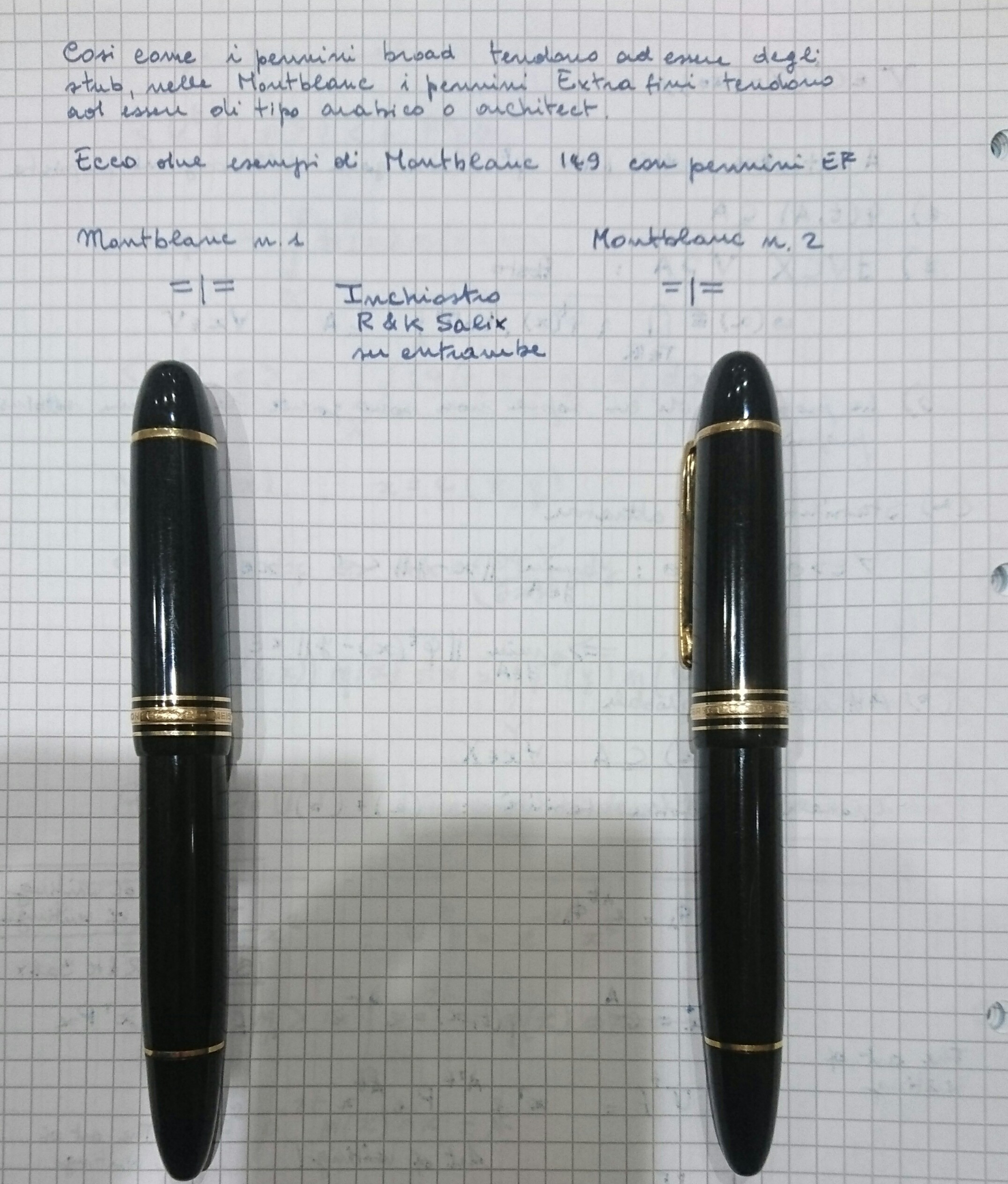 Stimolato dal post di Maruska dal fatto che anche a me piacciono i pennini con taglio arabico (o architect), ecco una foto che mostra che spesso i pennini extrafine Montblanc hanno proprio questo tipo di taglio.