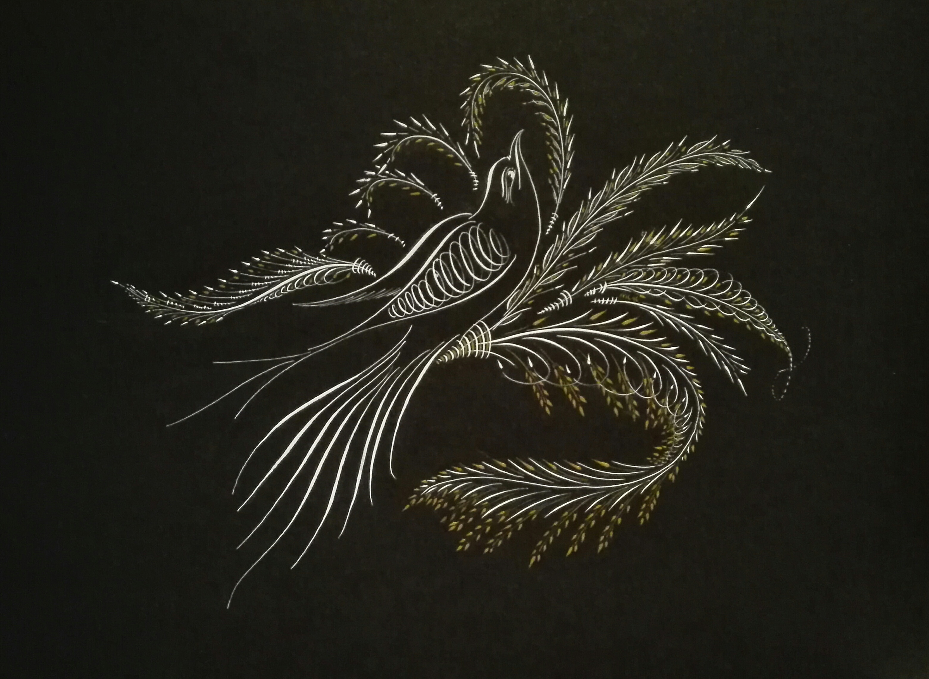 Si esegue con il pennino a punta fine ed è essenzialmente composta degli stessi tratti che si usano per la calligrafia. I soggetti principali sono fiori e uccellini.