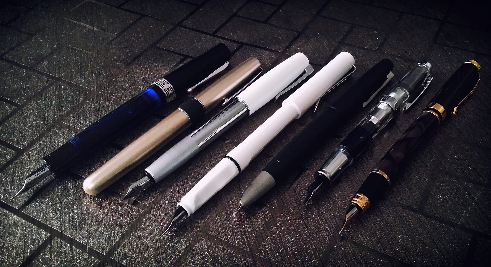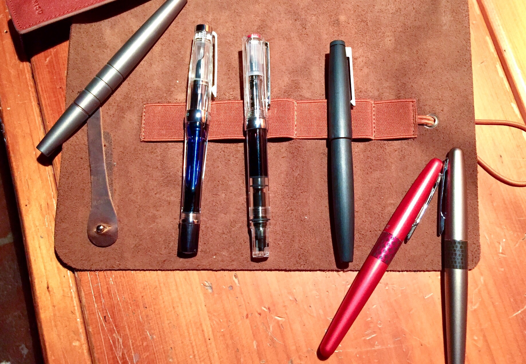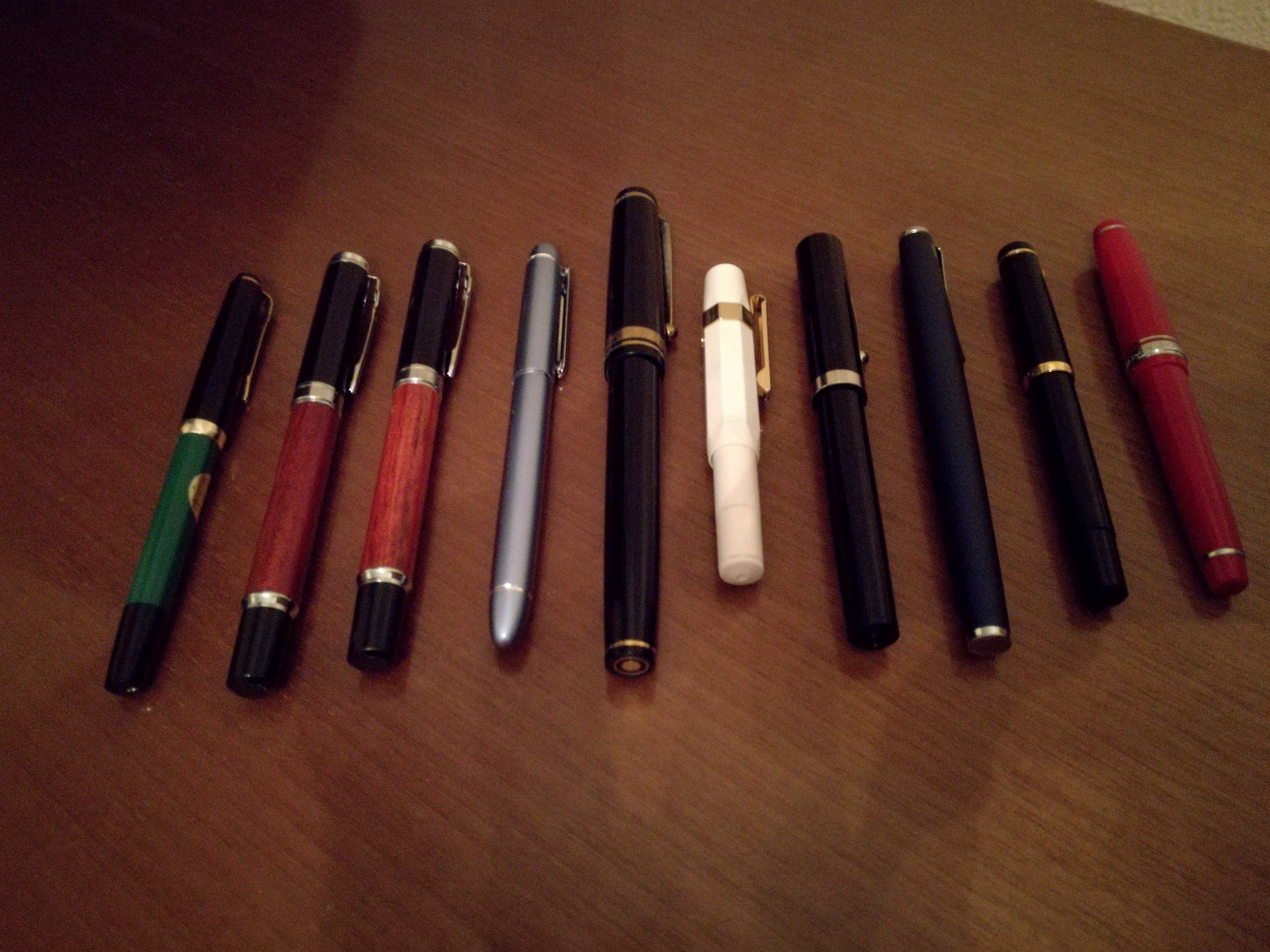 Le altre, tutte ben funzionanti, sono la Reiki con pennino Ef ( in realtà il mio scrive com un F europeo) , il solo alieno: il Roller Tombow Havana punta 0,5, la Faber Castell Loom F ( gran pennino in acciaio), una Jinhao 599 f, la Twisbi mini versione Al con pennino stub 1.1, la Jinhao 500 pennino F.