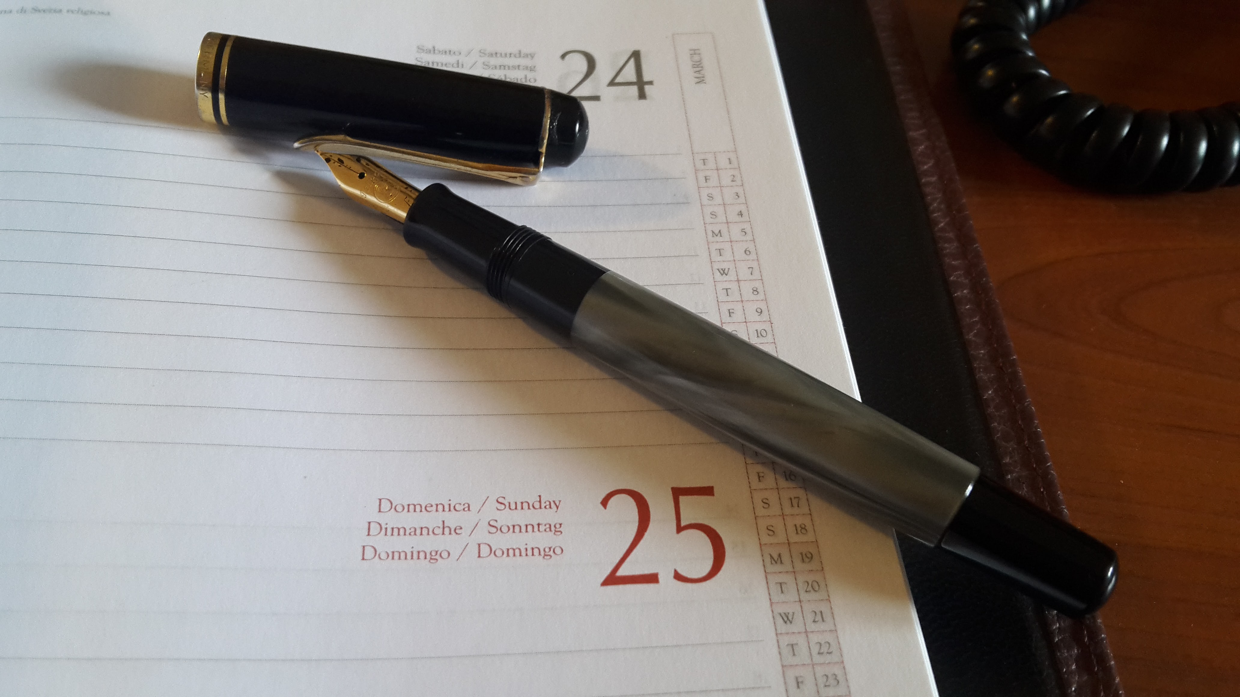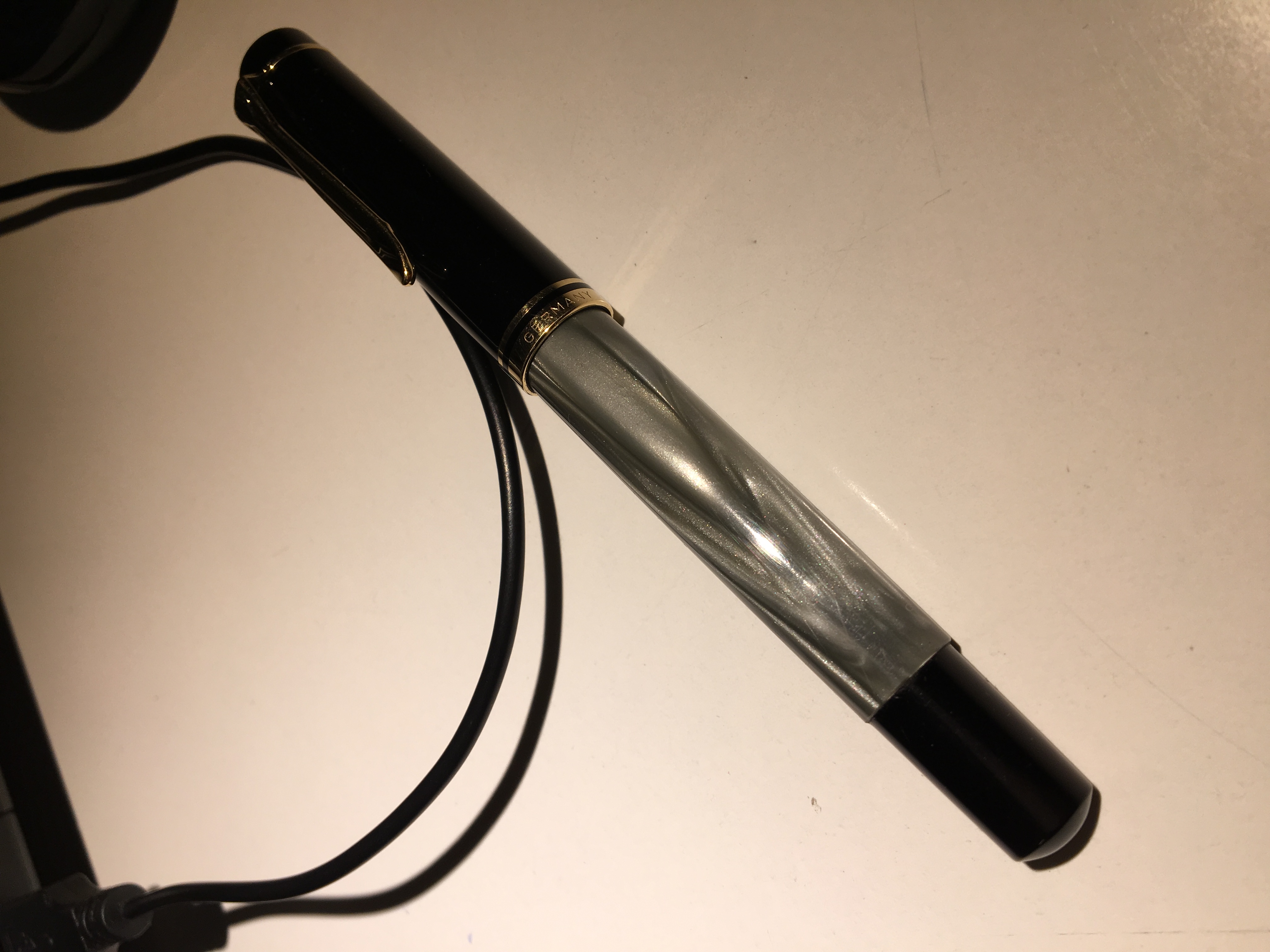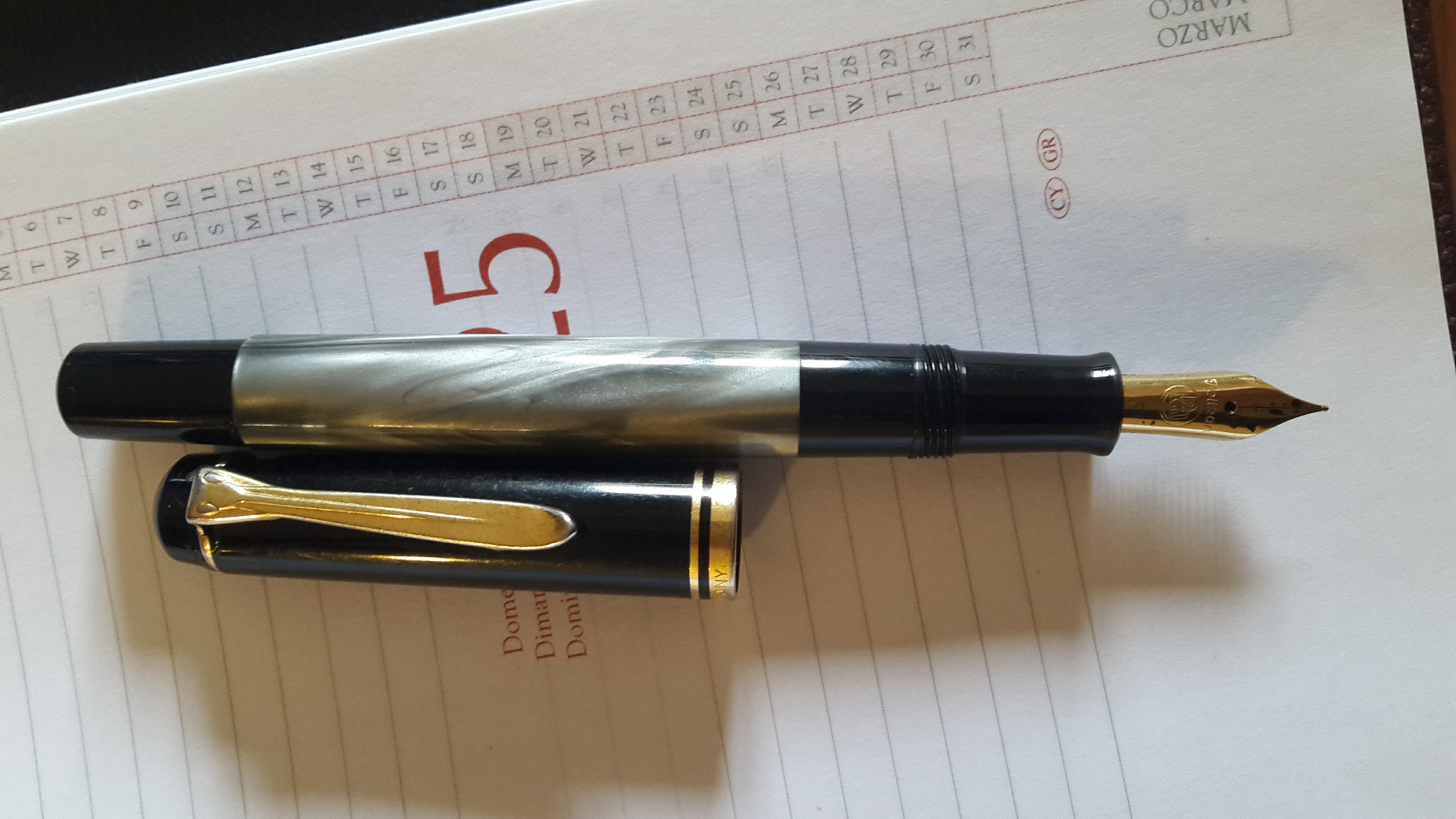 A parte il cappuccio rovinato nella parte superiore, la penna è praticamente perfetta, non mi ha dato mai alcun problema; il pennino F è di una flessibilità stupefacente che mi permette di scrivere che è un vero piacere; non perde una goccia di inchiostro; non ha mai avuto problemi di flusso irregolare, sbavature ecc..