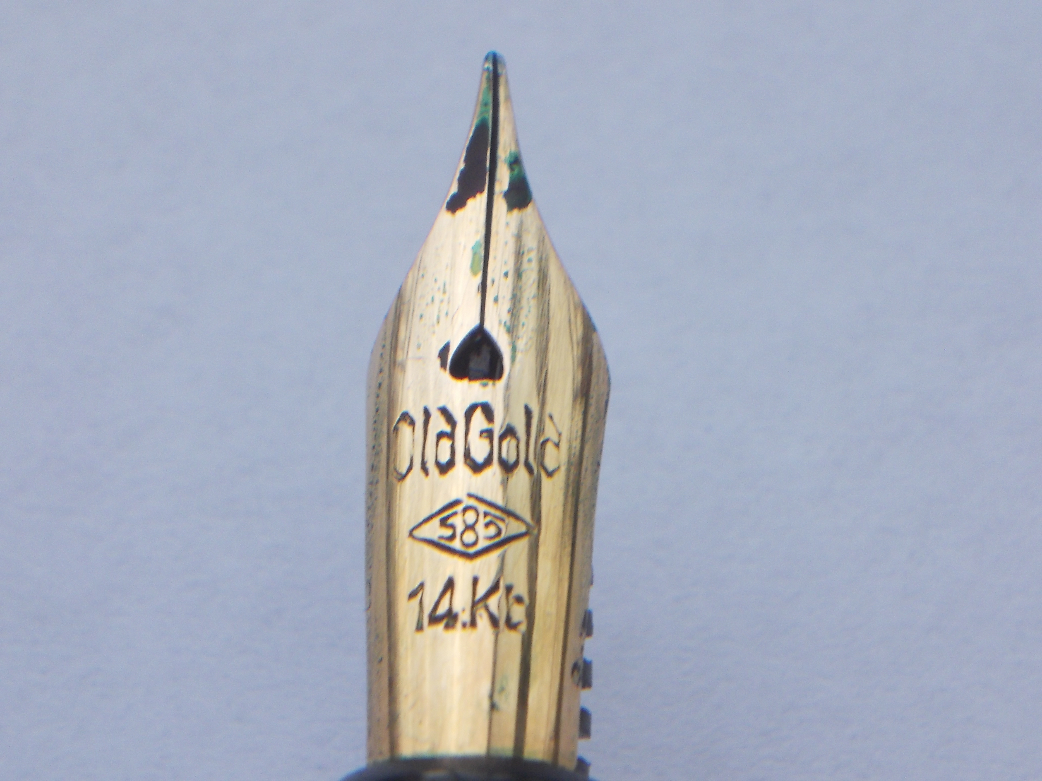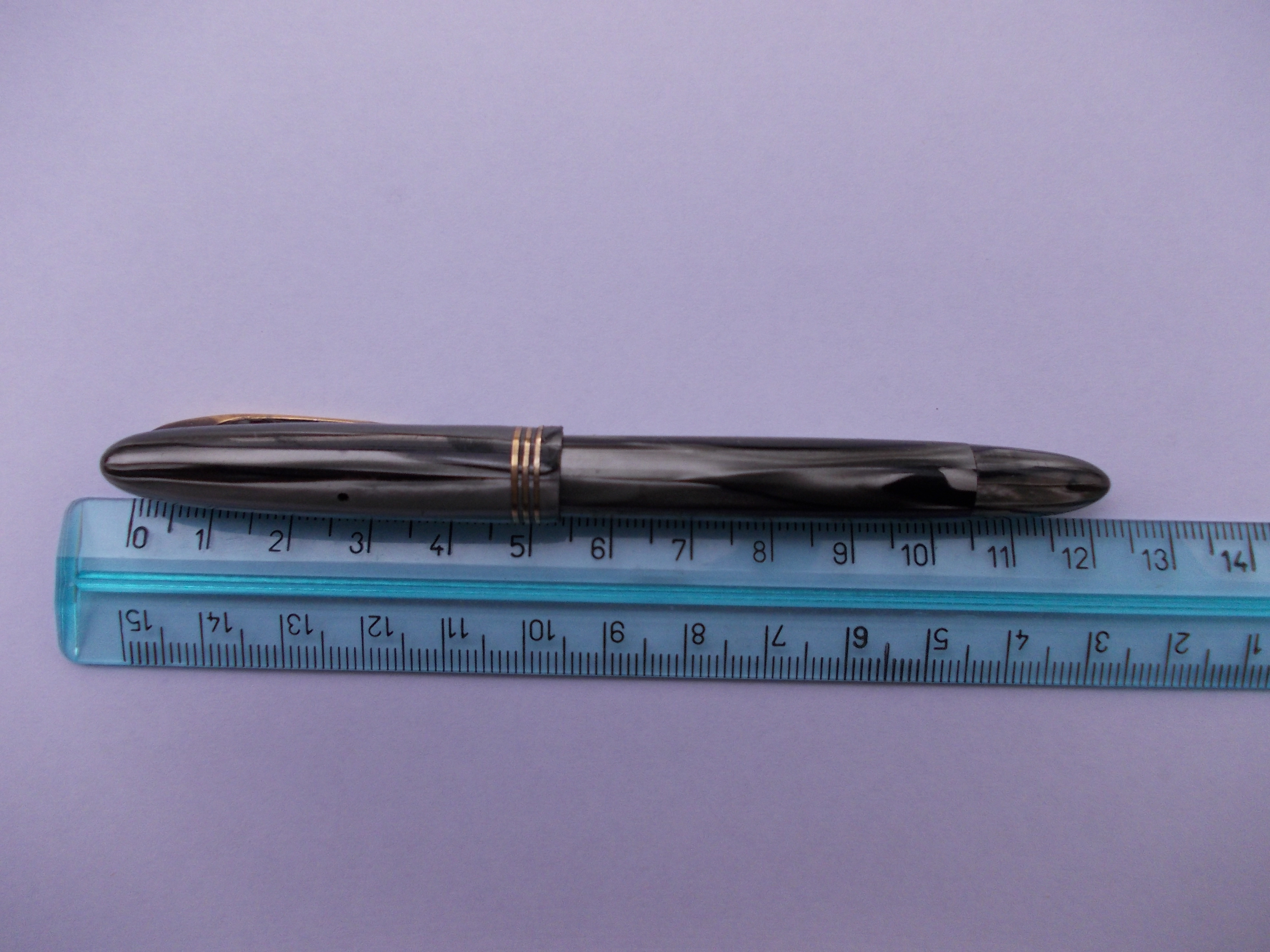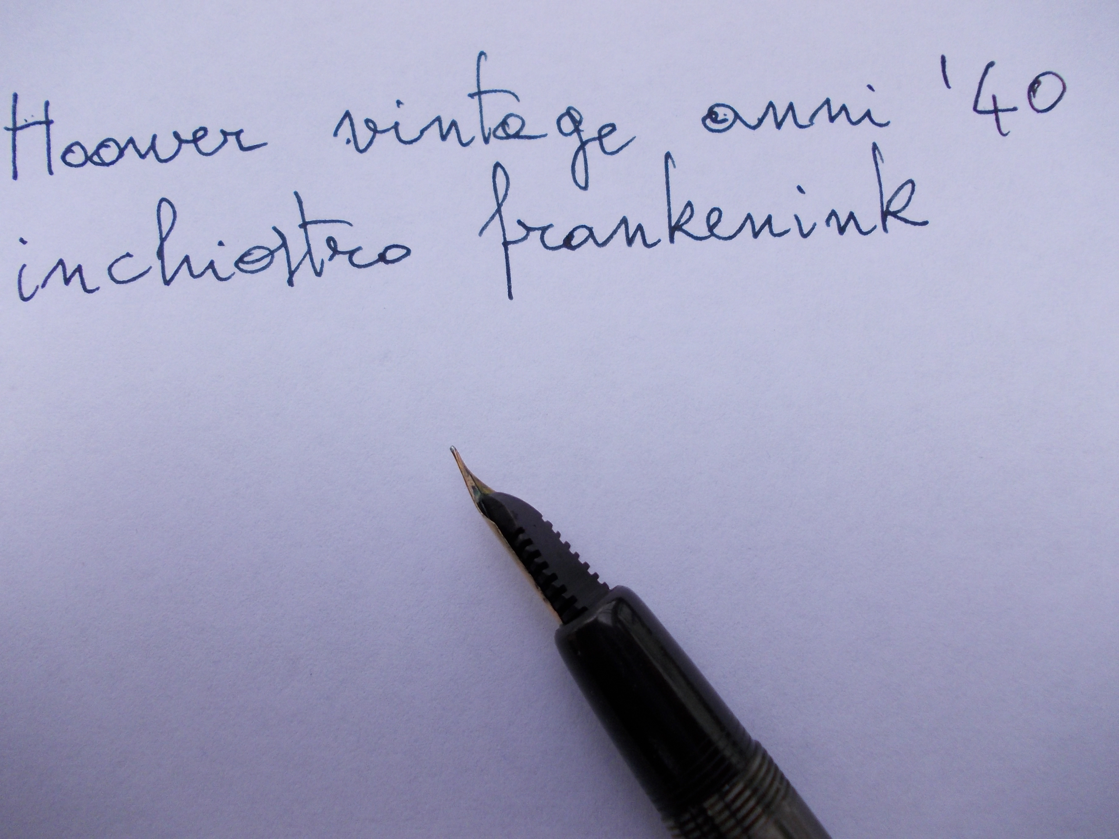 A quanto pare Letizia Jacopini è conosciuta tra i pennofili con il nome proprio, come Leonardo e Michelangelo. Non si capisce poi perchè l'italianissimo produttore di penne stilografiche abbia scelto un nome inglese, inventato per giunta. La Hoower è quindi una sorellina della mia Atlantica, entrambe prodotte fino alla fine degli anni '40. La penna è arrivata con il gommino in polvere e la barra di pressione arrugginita, ma recuperabile. Fusto e cappuccio sono di celluloide, in buone condizioni, tranne qualche piccola crepa alla base del cappuccio. Quello che mi ha stupito è il pulsante di fondo filettato dalla parte esterna, non so per quale motivo (ma ho visto su internet questa particolarità anche per una Parker Victory).