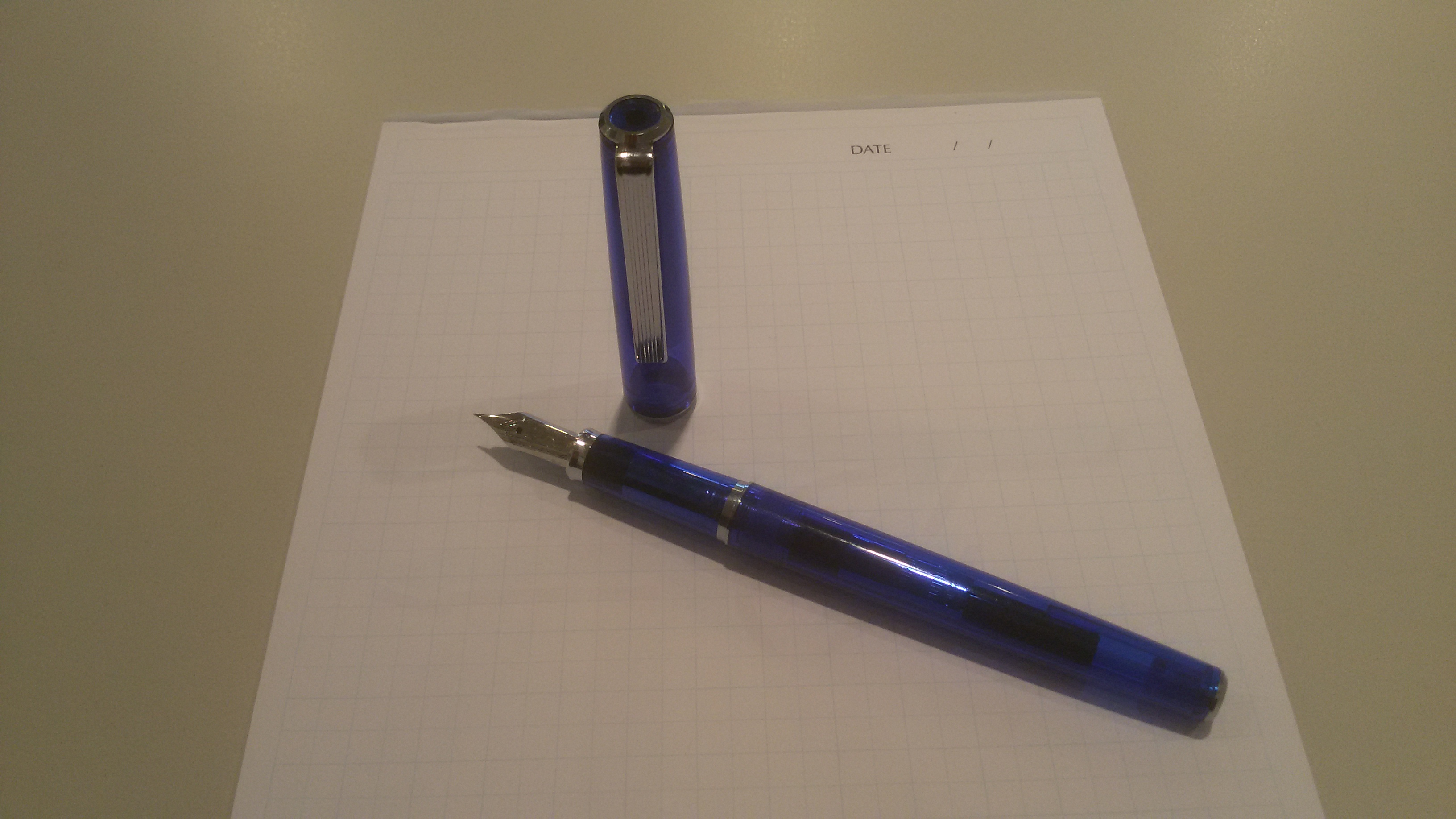 Si tratta della versione in resina trasparente della Young. La penna è realizzata in un colore azzurro scuro, risulta un po' meno trasparente della Sailor Procolor 500 Uchimuzu.