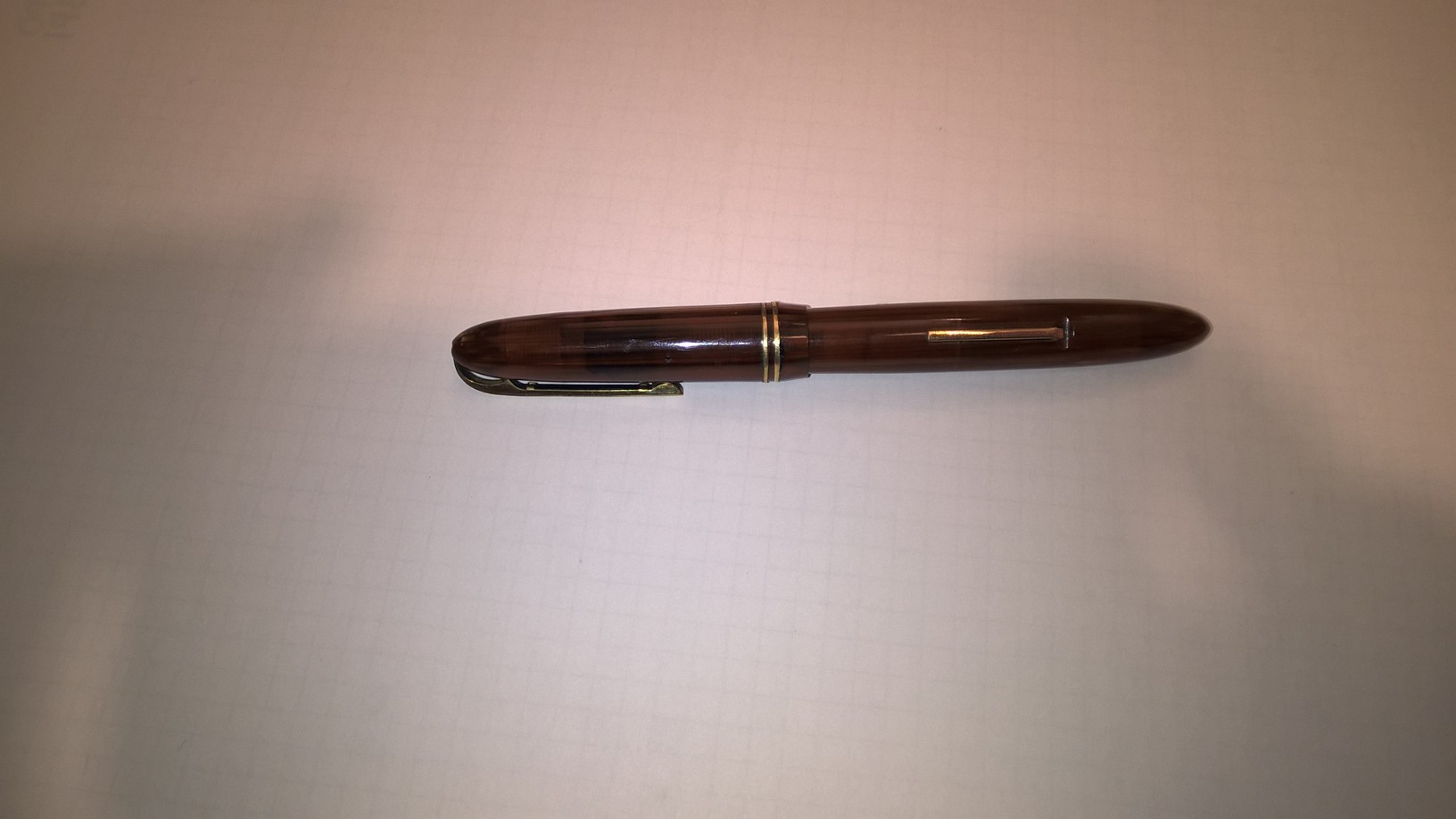 La penna è molto ben tenuta, è di celluloide ed ha il caricamento a leva. Potrebbe essere dagli anni '30 o '40.
