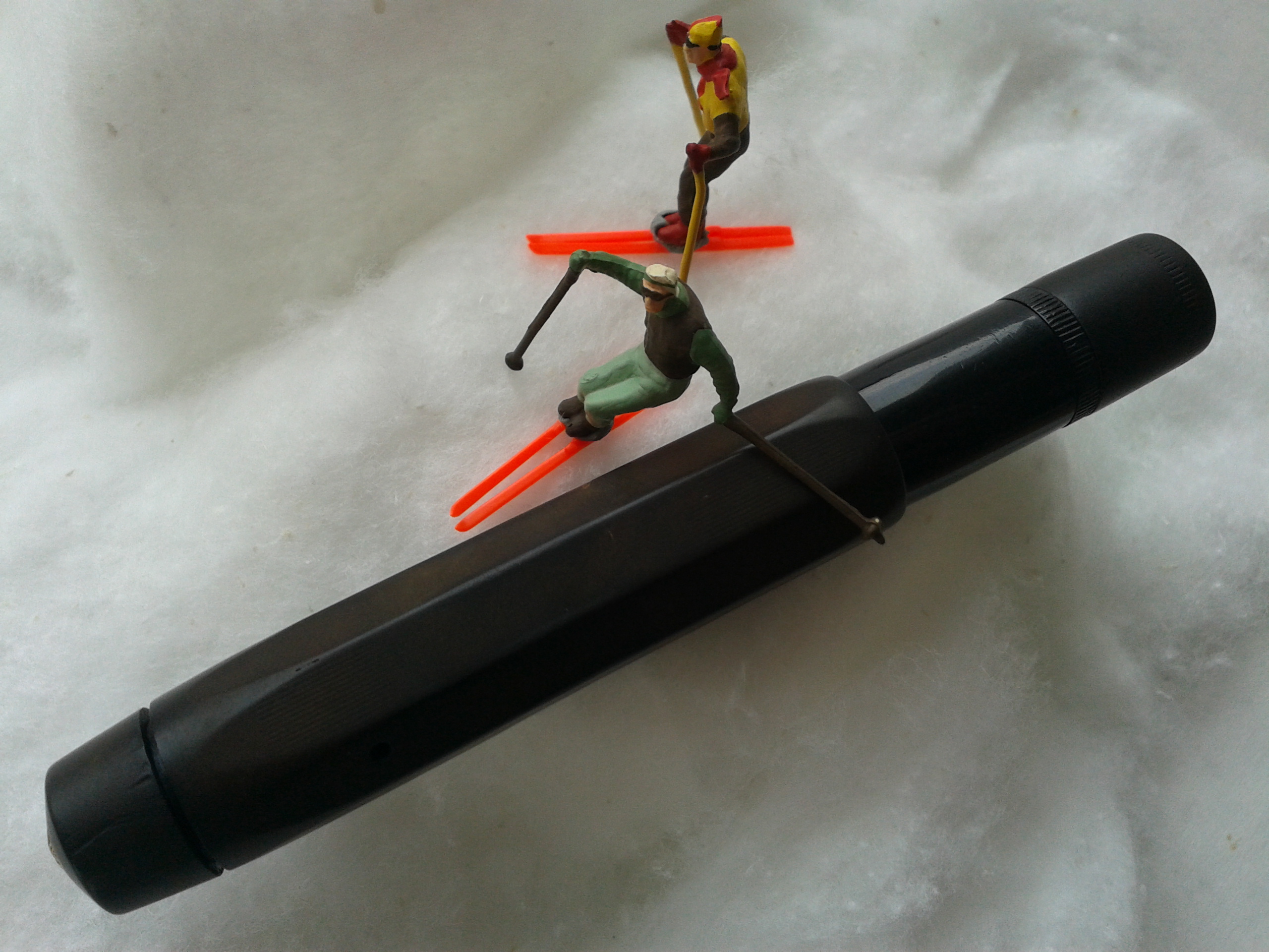 Nella Sport, infatti, per garantire una assoluta portabilità, che è la missione principale di questa penna (dopo la scrittura, ovviamente!), uno degli elementi costitutivi dello strumento è spinto all’estremo e non vi svelo alcun segreto se ricordo trattarsi del cappuccio, sicuramente abnorme rispetto alla tradizione del design delle stilografiche prodotte fino a quel momento (con esclusione, forse, solo di alcune telescopiche): ma con cappuccio calzato, in posizione di scrittura, appena si nota!