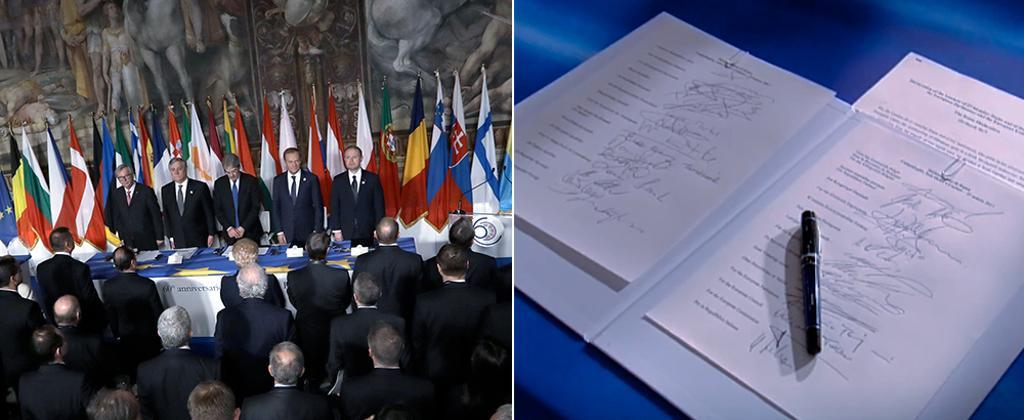 Qualche giorno fa i rappresentanti dei paesi della Unione Europea hanno firmato un documento con la stessa penna che 60 anni fa aveva firmato i Trattati di Roma. Foto della penna sono apparse su diversi giornali. Ne riporto una: di che penna si tratta?