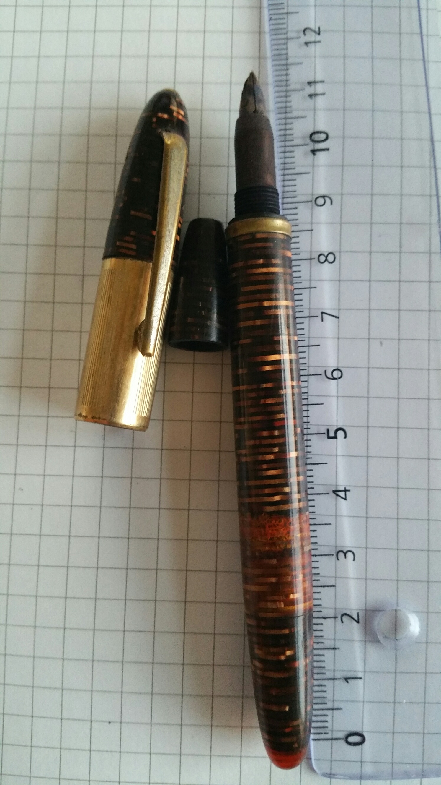 Se non riporta scritte di sorta è la classica "anonima" e difficilmente si può dire di più. Ma prova a guardare bene in controluce sul corpo e sul cappuccio. Ad occhio è una produzione del dopoguerra a pennino coperto, nata sull'onda del successo della Parker 51, ne esistono molte ma codesta sembra pure di discreta qualità.