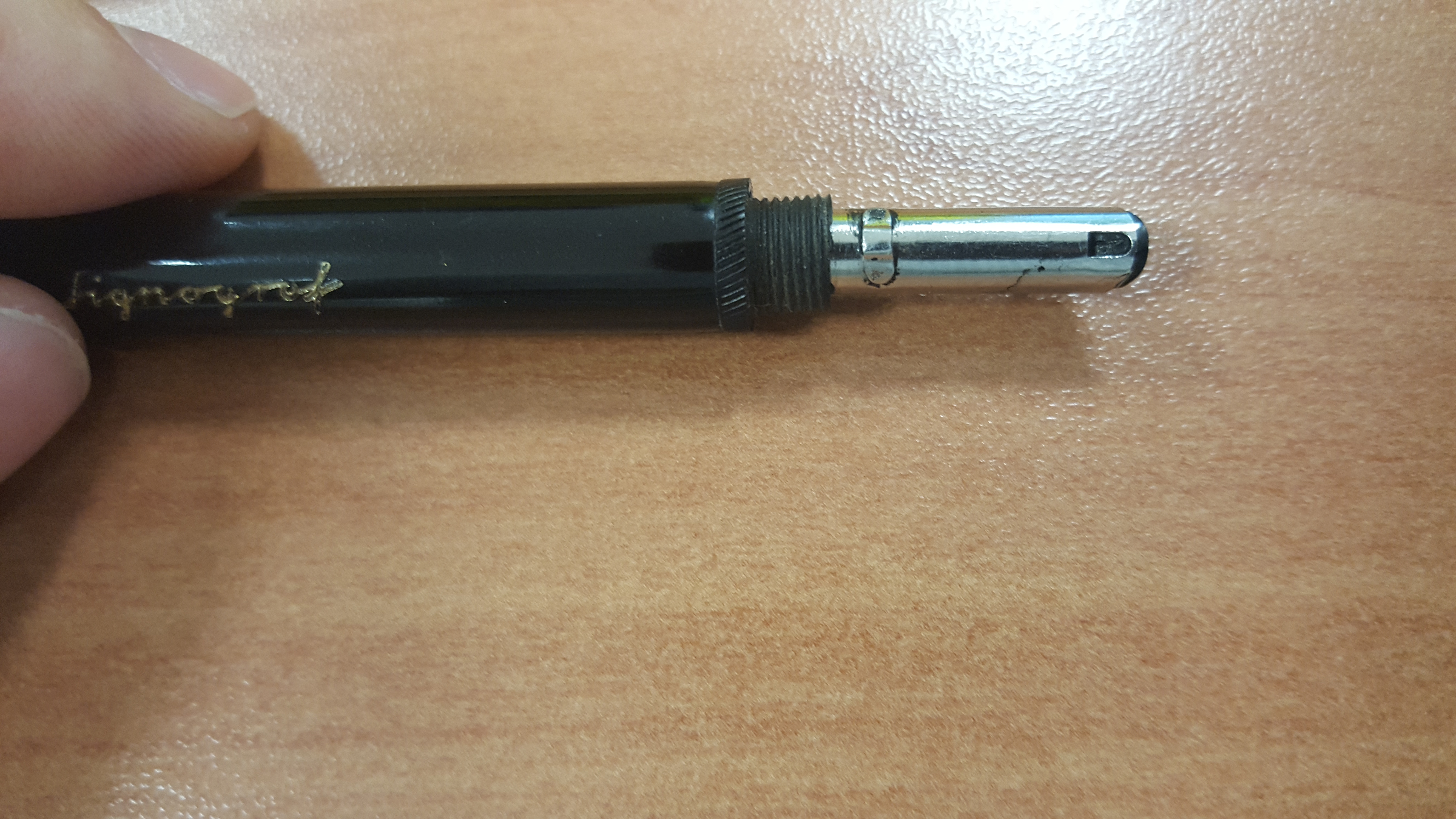 In rete non ho trovato nulla, ma ad occhio sembrerebbe una penna calligrafica ad intinzione, dato che non ci sono parti mobili e non ho trovato nulla che possa assomigliare ad un sistema di caricamento.
