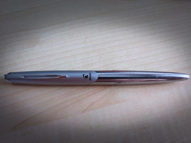 Un lampo ha illuminato il mio sguardo. Era tappata e ho sperato con tutto il cuore che fosse una stilografica, ma purtroppo, come potete vedere, così non era. È una Pilot roller dalla struttura praticamente identica alla Vittorio Martini stilografica. Ho chiesto alla libraia se avesse anche la versione stilografica, ma la risposta è stata negativa. Ho quindi domandato se conoscesse il modello della penna, in modo da cercare su internet la la sua gemella penninodotata, ma anche in questo caso non ha saputo essermi d'aiuto.