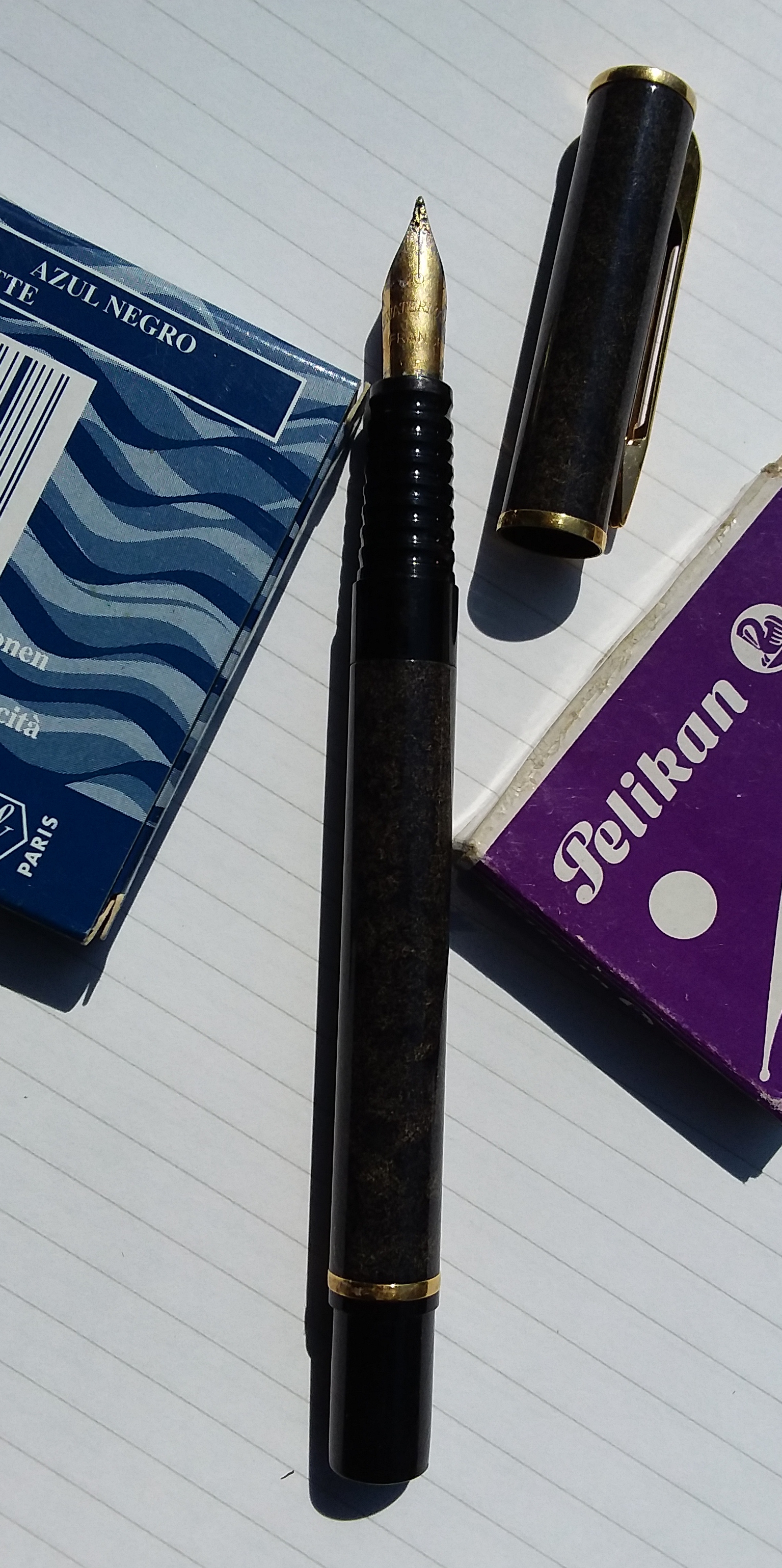 Questa presta il suo cappuccio alla 1 poiché il pennino della 1 è stato "modellato" dalla mia scrittura mentre il suo da quella di un altro. Ma uffa! Nonostante la luce non si nota la colorazione "marmorizzata".