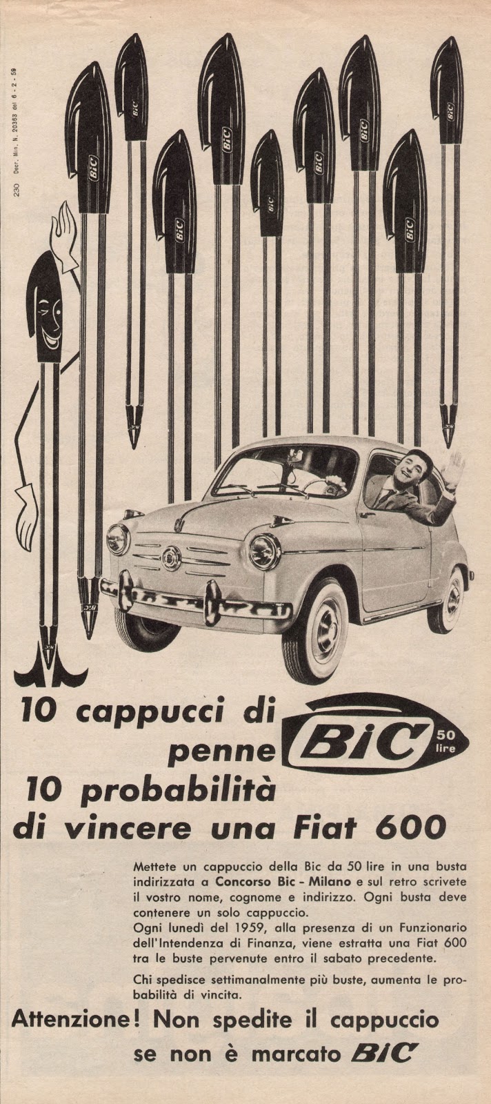 La BIC con il cappuccio come lo conosciamo ora a mia memoria comparve nella seconda metà dei '60, ed a me arrivò in mano con la "Punta Fine", già allora caratterizzata da un fusto giallo-arancio e non più trasparente. Poi anche le tratto medio cominciarono ad avere la clip allungata, in concomitanza - se ben ricordo - con l'adozione di una punta in plastica ed ottone, e non più solo in ottone.