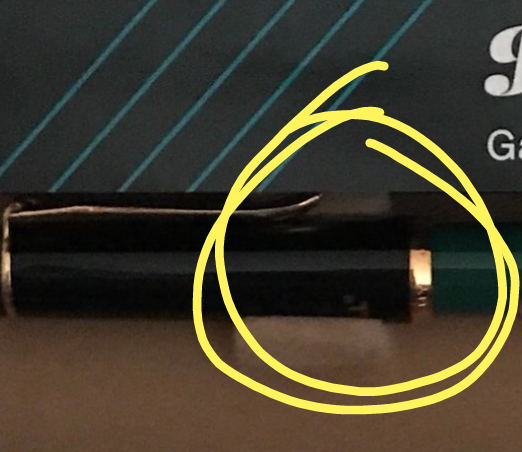 Sto acquistando una pelikan in box nostalgia per il compleanno di mio padre, di seconda mano ma mai utilizzato... Nella foto qui allegata è evidente che sul tappo c'è una qualche scritta/incisione che non avevo mai riscontrato nelle penne pelikan, voi che ne pensate?