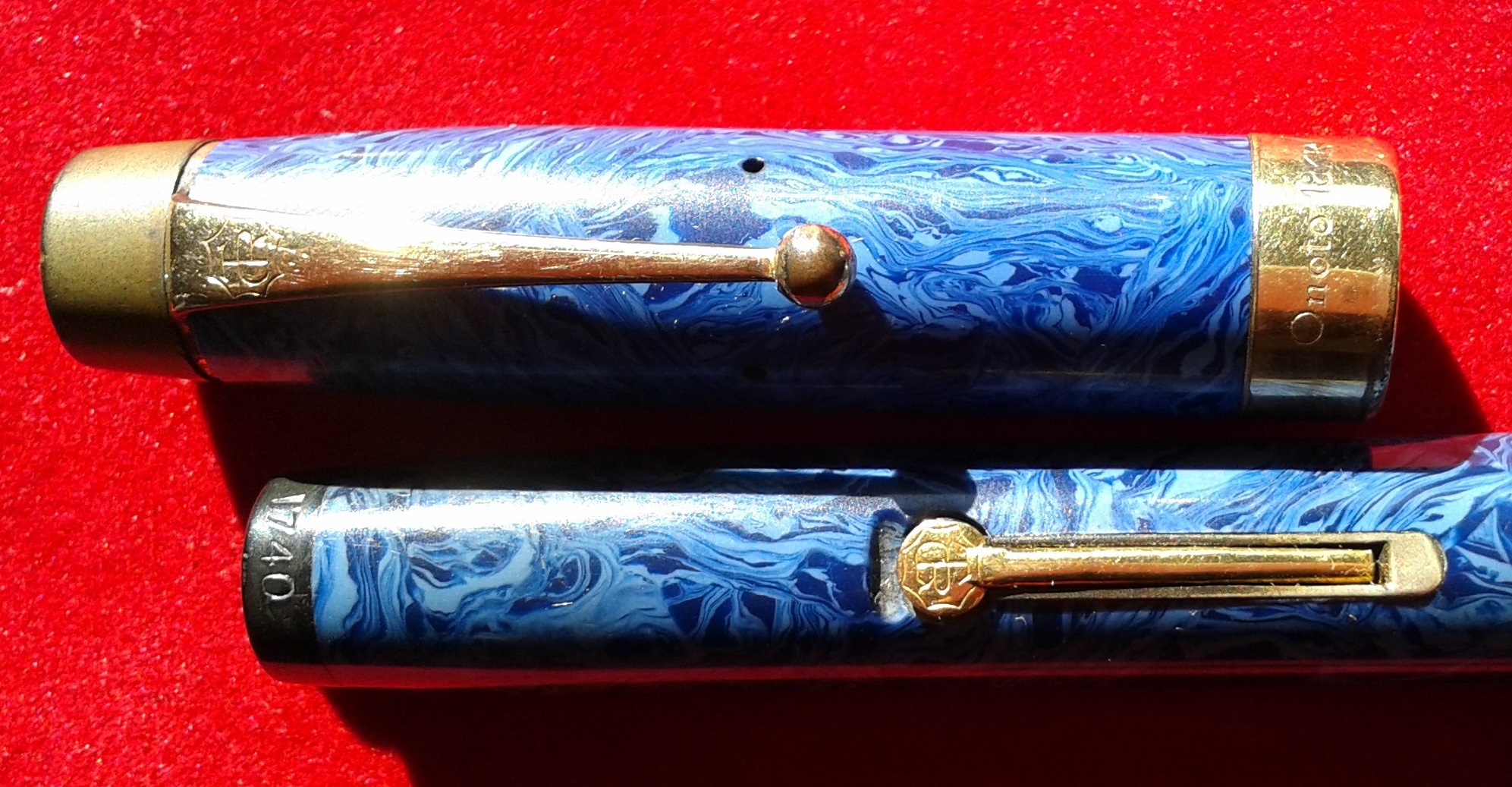 Io di Onoto blu ho questa in celluloide "Regina Blue" (che all'inizio avevo scambiato per HR variegata...).