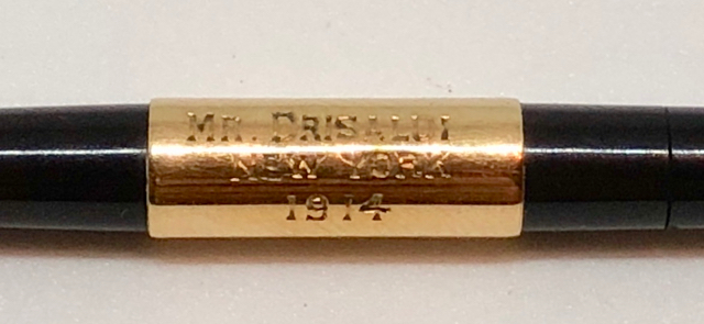 La particolarità che arricchisce questa è che è stata donata al Cav. Drisaldi, primo importatore Waterman in Italia (dopo la vicenda L.&C. Hardtmuth) nel 1914 durante la sua visita a NY per definire l'accordo commerciale.