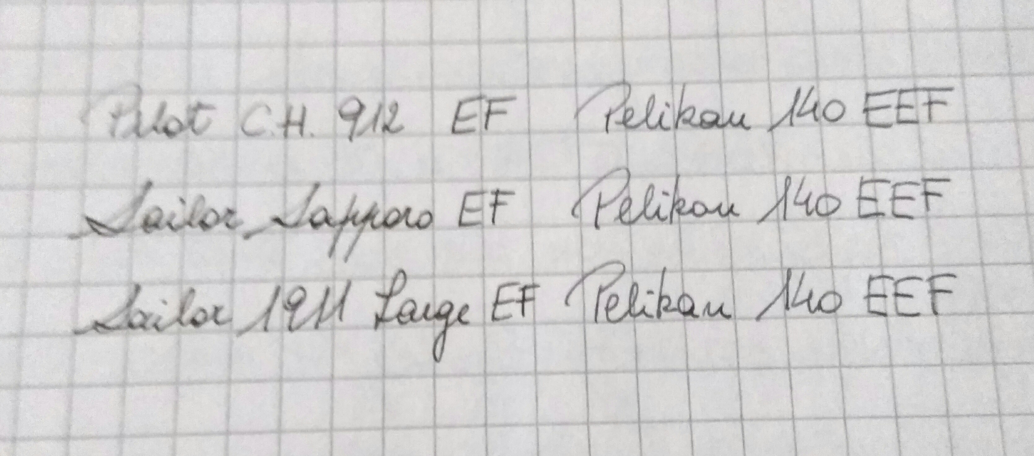 Peraltro, nel frattempo ho fatto sostituire il pennino con un EF, e come diceva il mitico Ottorino (che ha SEMPRE ragione! E' una costante universale, come il numero di Avogadro o il Pi Greco) non è cambiato praticamente niente: tratto sempre troppo largo e abbondante.![]()
