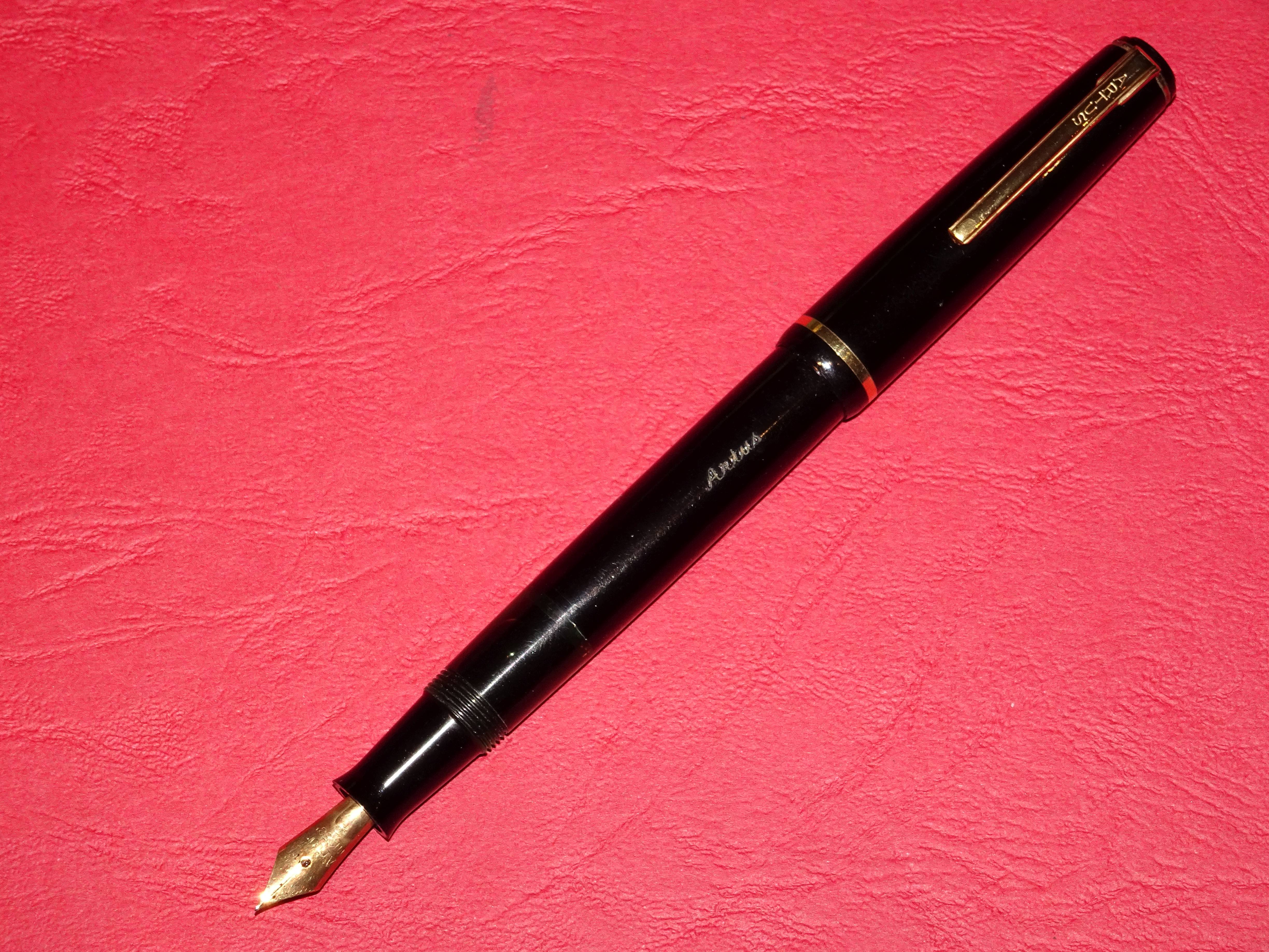 Si tratta di una Artus, nome del modello ignoto, caricamento a pistone, nella migliore tradizione germanica, ampia finestra di ispezione, pennino in oro 14 carati extra fine, flessibile.