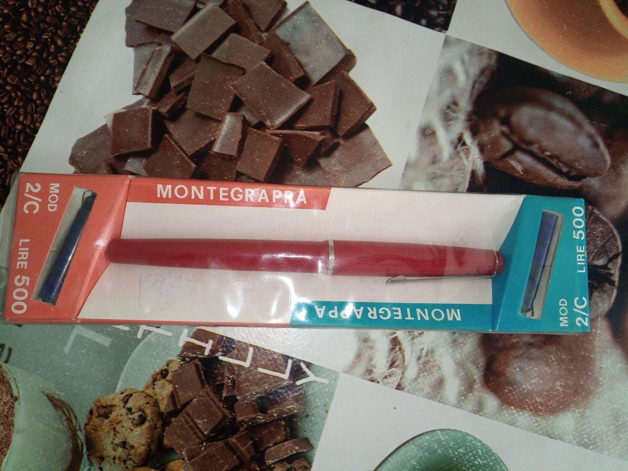 Una Montegrappa Mod 2/C, che ho trovato con tutta la confezione, in compagnia di diverse altre variamente colorate, ho preso la rossa perche' volevo un tocco di colore nella mia microcollezione.