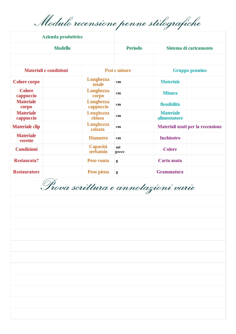 PP.SS. la scheda come vedete in questa versione è colorata ma niente vi impedisce di renderla in bianco e nero, ho pensato solo che facendola così potevano saltare all'occhio immediatamente i dati che servono, e poi un po di colore non guasta no?