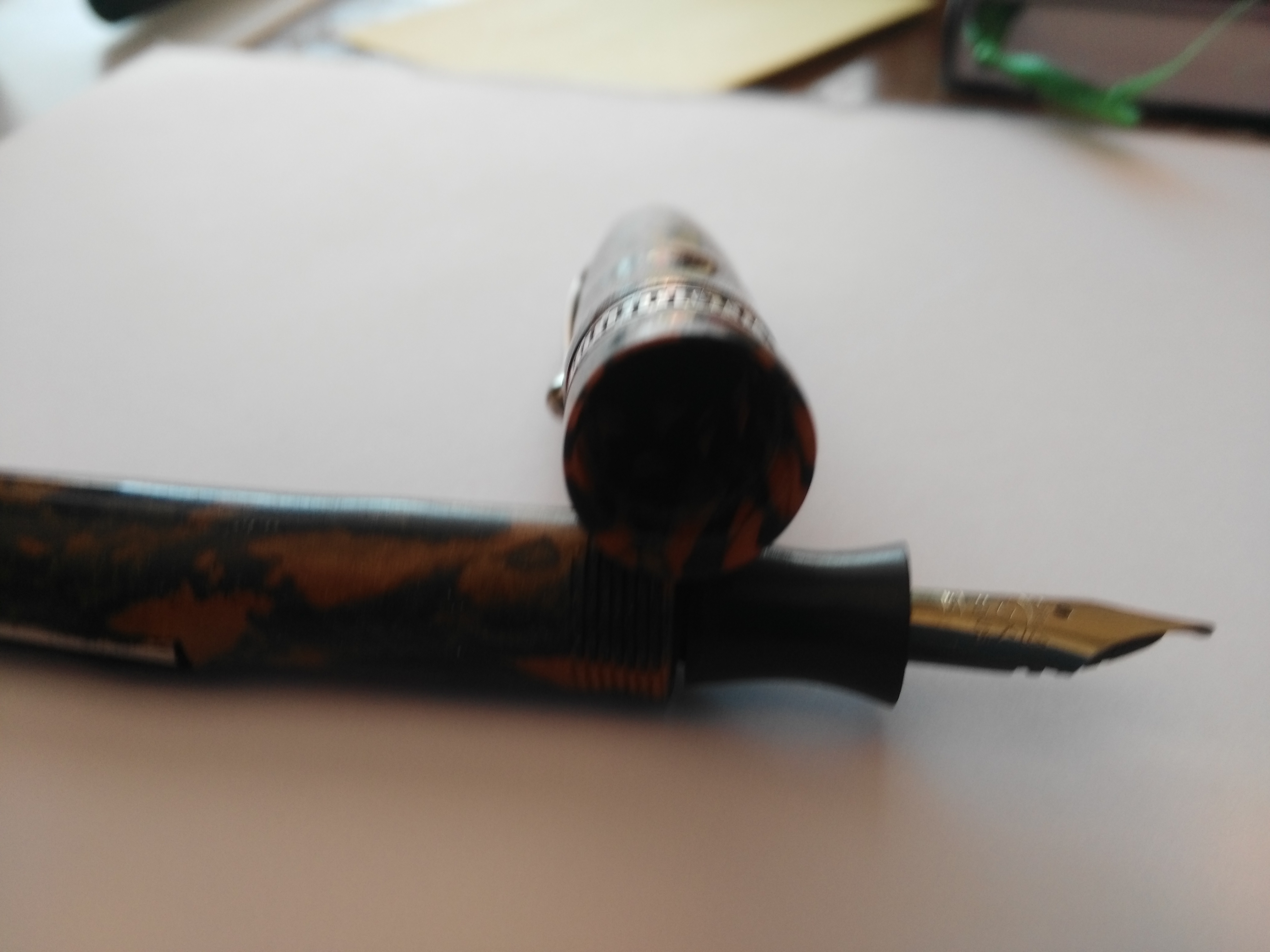 In breve: decido di acquistare, sul noto sito di aste on line, da un venditore tedesco con feedbacks numerosi ed assolutamente positivi, una stilografica così descritta: "Vintage "James" Fountain Pen-Caramel Marbled Lever Filler-France c. 1930s".
