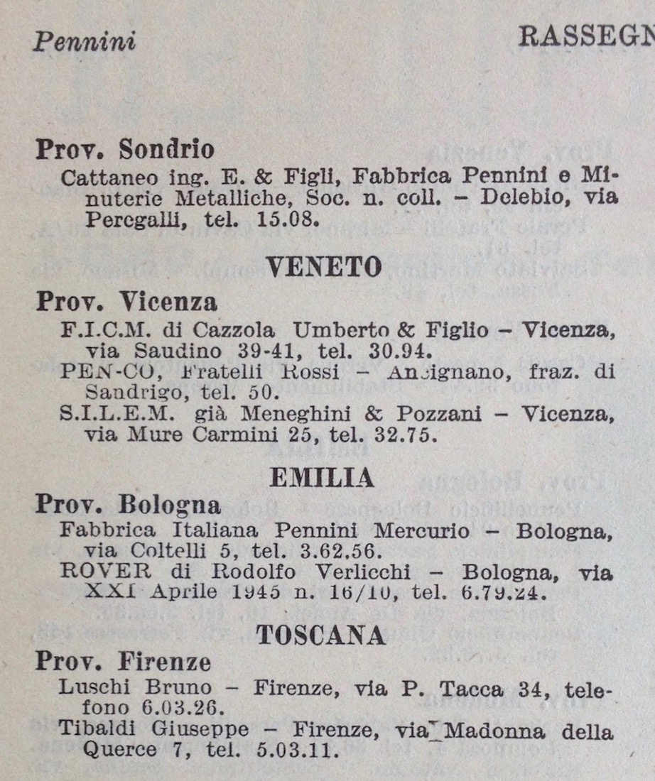Produttori italiani di pennini, 1956