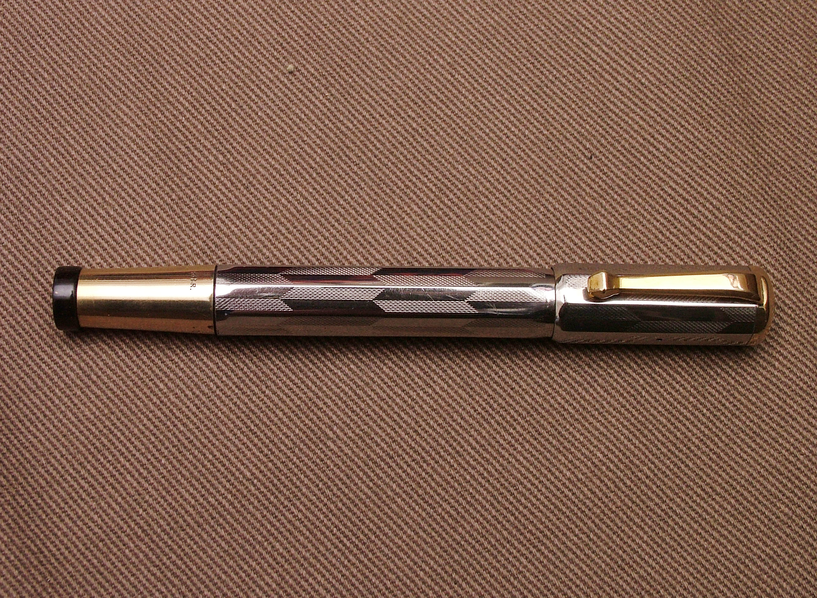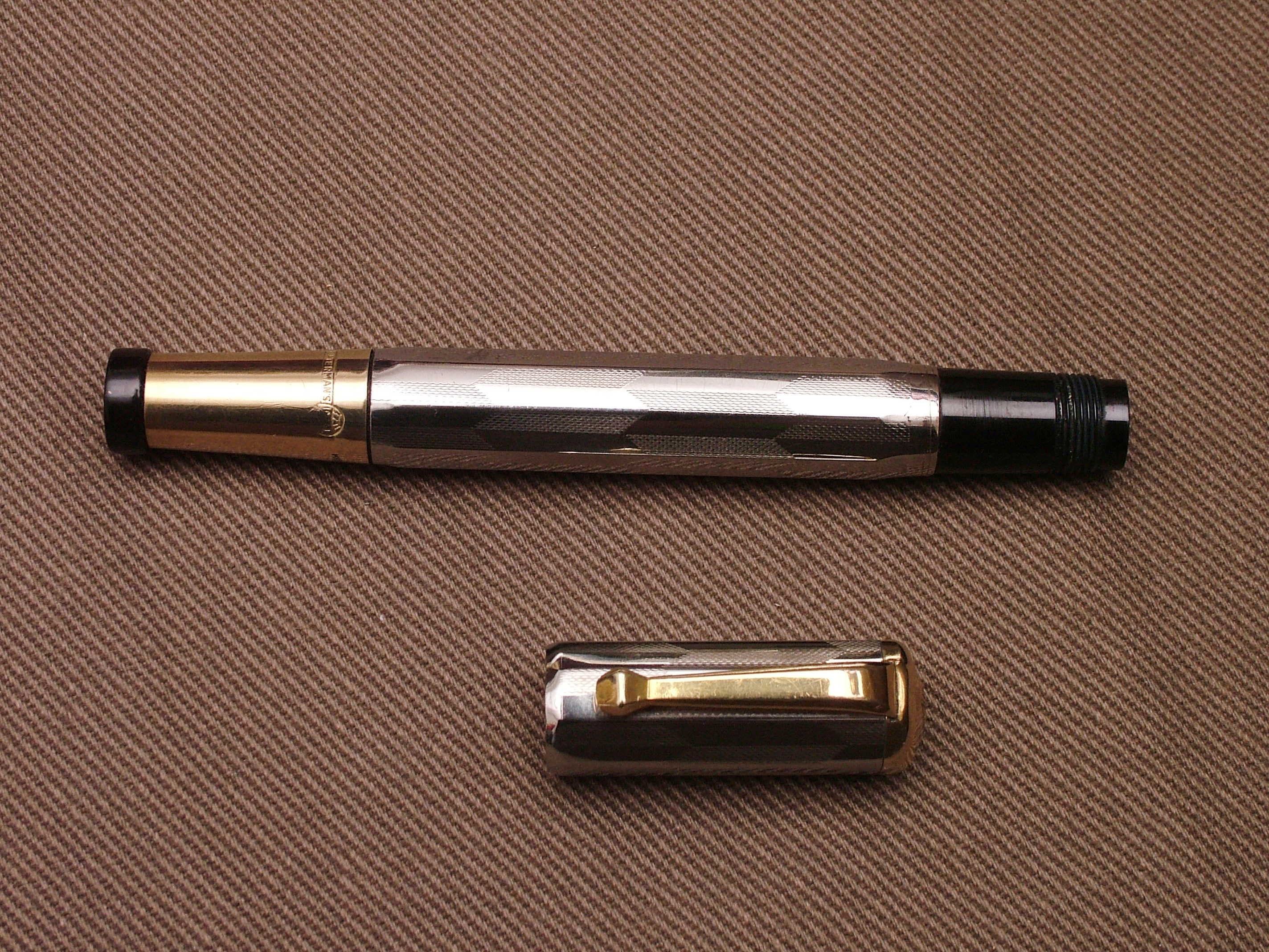 Questa Waterman"S 42 l'ho trovata particolare per i materiali e per come sono disposti, mi ricordano molto le penne moderne, testina, clip e fondello laminato oro mentre cappuccio e fusto in agento anche se non marcato direi proprio che è argento, tutto in perfette condizioni senza alcun segno di consumo delle parti laminate.