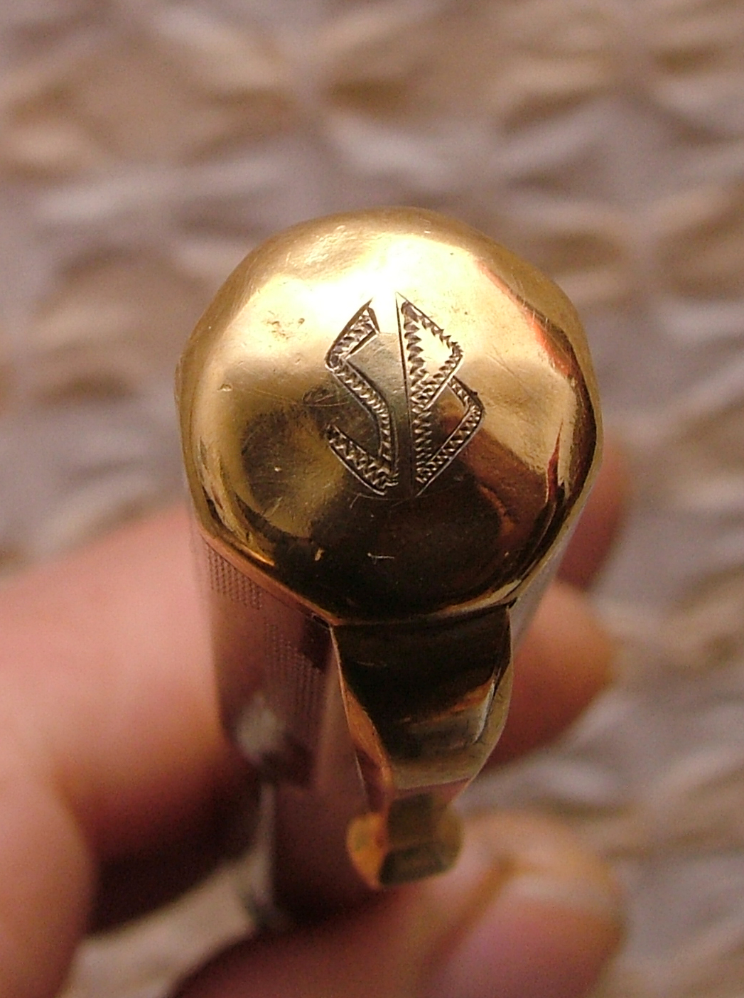 Bella penna, bella forma, mi piace molto l' incisione delle iniziali. Non era e non è cosa facile fare queste piccole incisioni al bulino, ti scappa la mano e devi buttare tutto!!