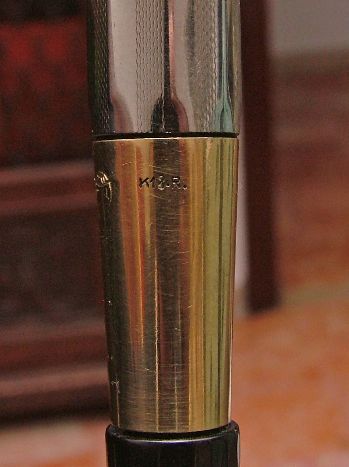 No, non esistono numerazioni simili con le Waterman, a me sembra una stampigliatura 18K.R. (il classico Karat Rolled, o Karati Rinforzati) fatta senz'altro a stampo, ma presumo con uno stampo a caratteri componibili, dove qualcuno ha composto male la scritta mettendo la K davanti al 18 invece che dopo.