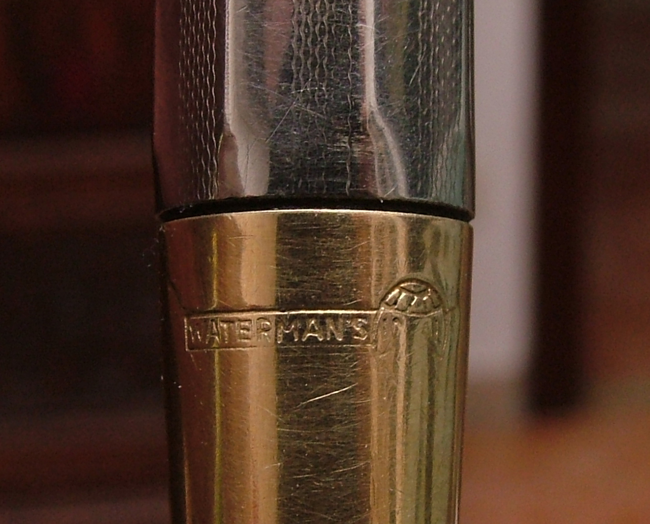 Comunque non ci sono dubbi di sorta che sia una Waterman, e con rivestimento ufficiale marcato come tale. Ed è pure un bel rivestimento, molto originale nei due colori.