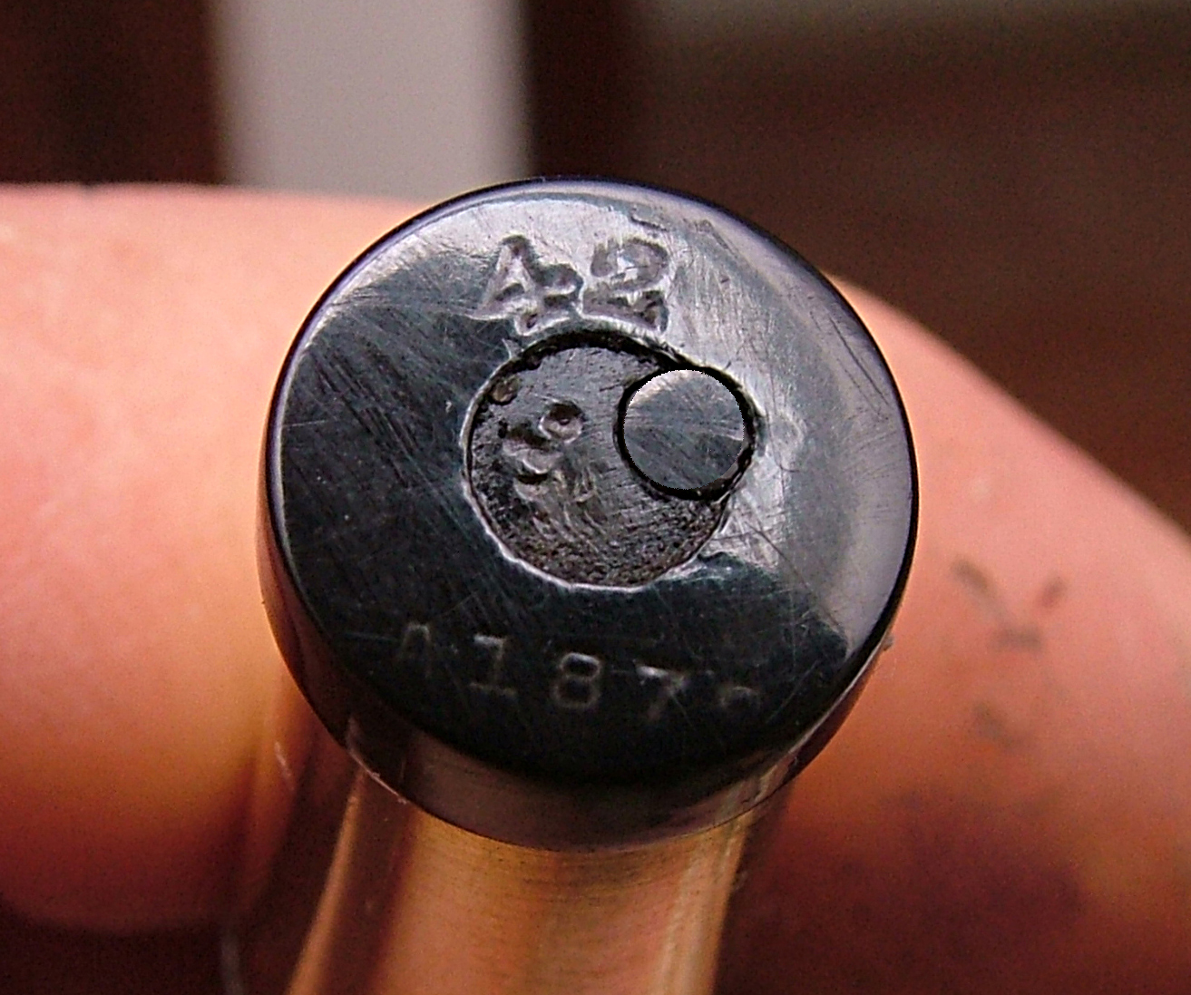 La testina sembra ammaccata, ma non lo è, sono formazioni che riportano la forma ottagonale della penna che doveva essere di qualcuno con la iniziali SB sempre riportate sulla testina.