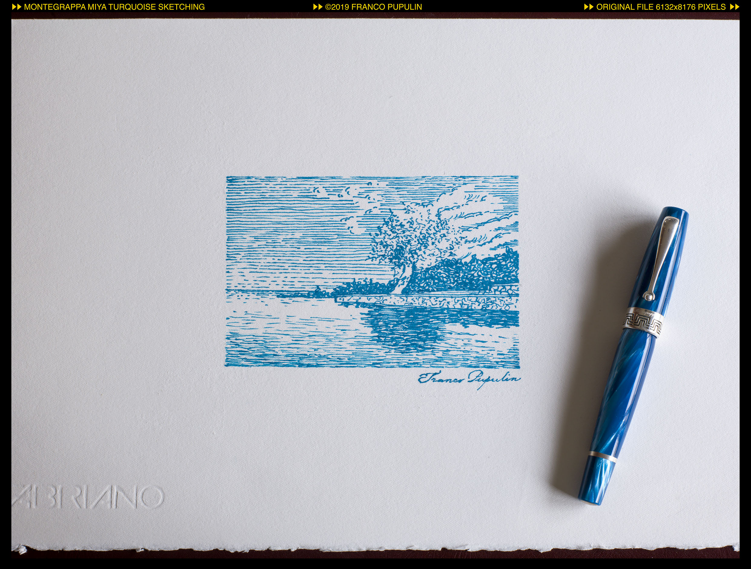 Che cos’altro avrei potuto utilizzare nella mia Turchese se non un inchiostro dedicato, di famiglia, come il Turchese di Montegrappa? E che cos’altro avrei potuto tentare, con una penna e un inchiostro di questo colore, se non una veduta marina, di un bel mare turchese?
