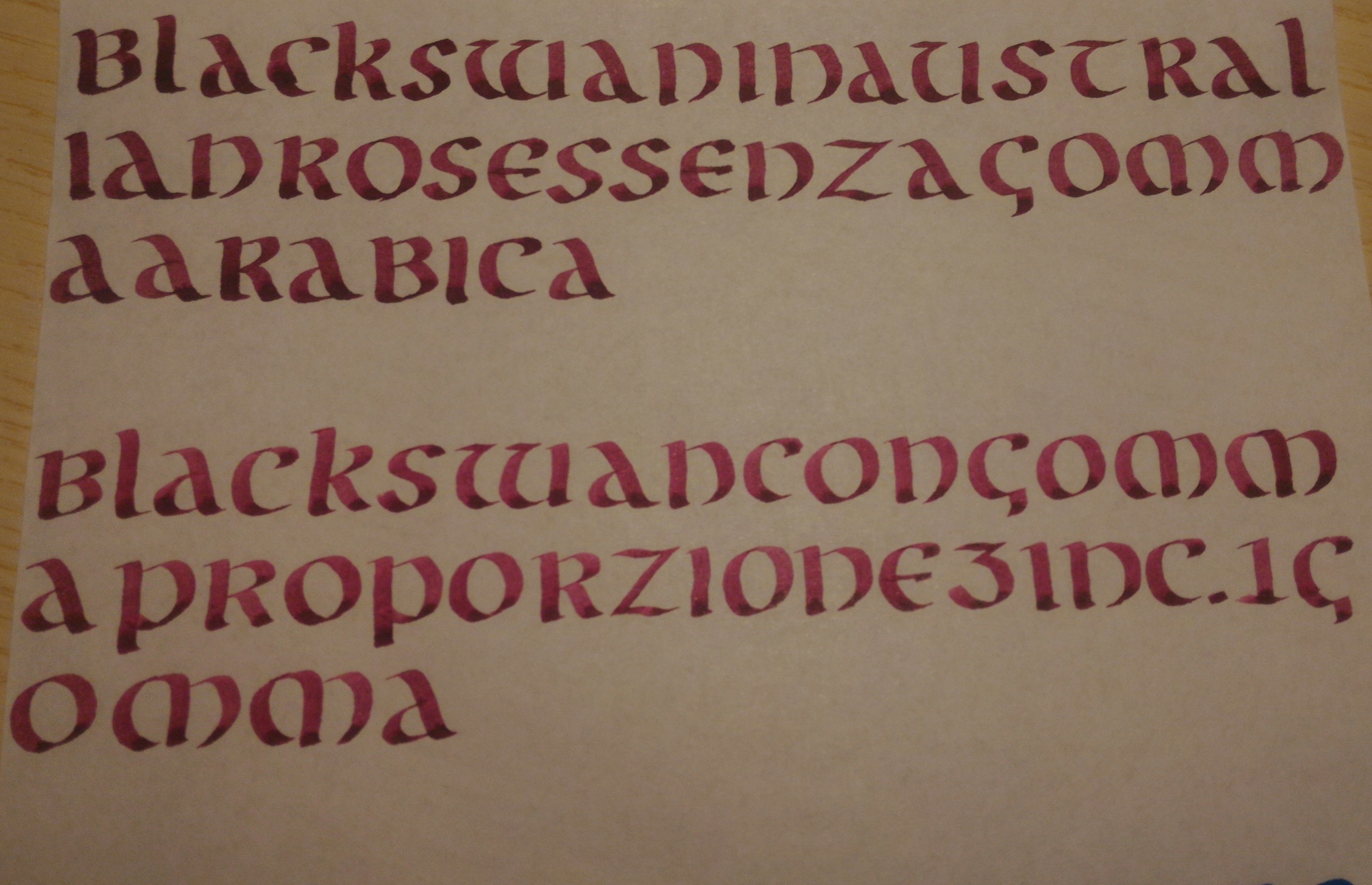 La carta è Favini Schizza&Strappa 60g e ho usato un pennino Leonardt da 2mm, ecco l'esperimento nel complesso, fotografato all'esterno con cielo nuvoloso.