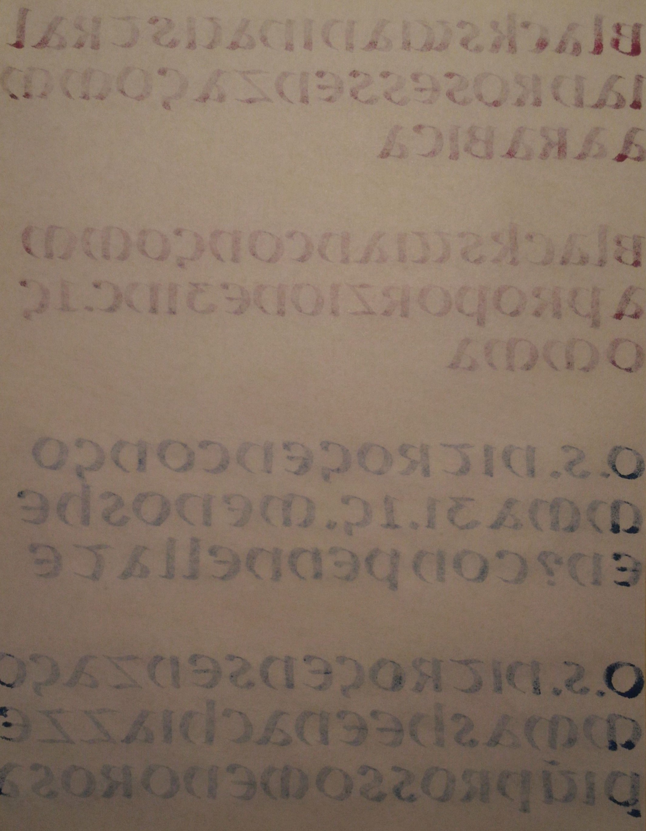 Questa foto invece è stata fatta appoggiando il foglio sull'abat-jour per fotografare in luce trasmessa, attraverso la carta. In alto inchiostro puro, in basso con gomma.