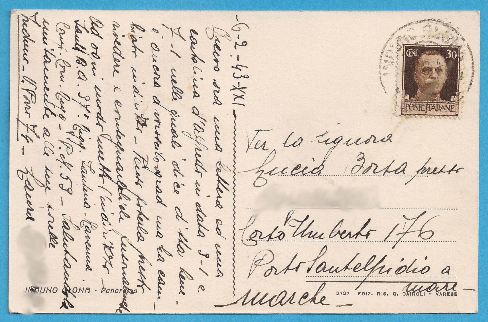Si, durante il periodo bellico la posta era sottoposta a censura.