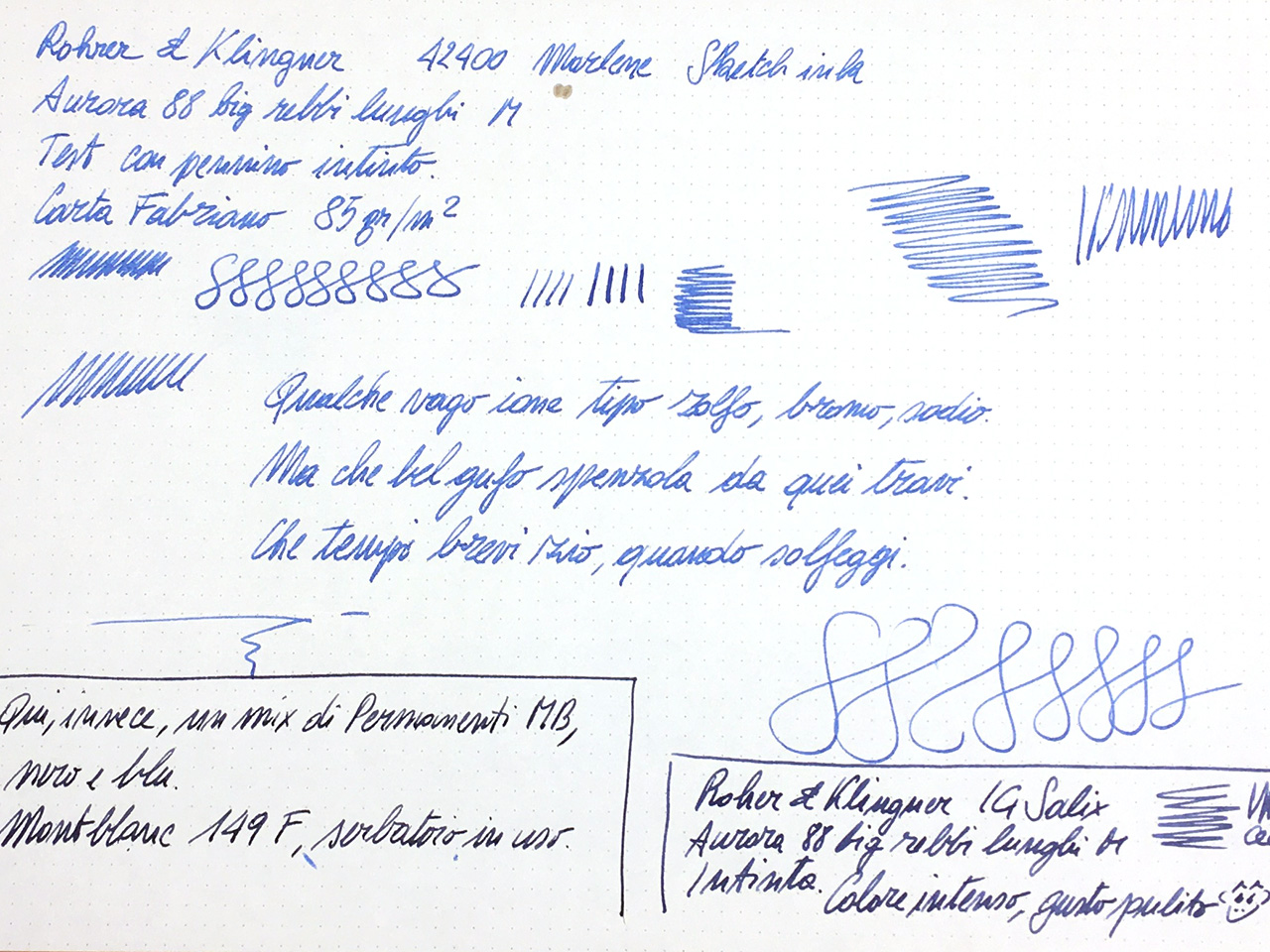 Le penne sono una Aurora 88 big rebbi lunghi M intinta nei due R&K e una MB 149 F caricata con il mix MB.