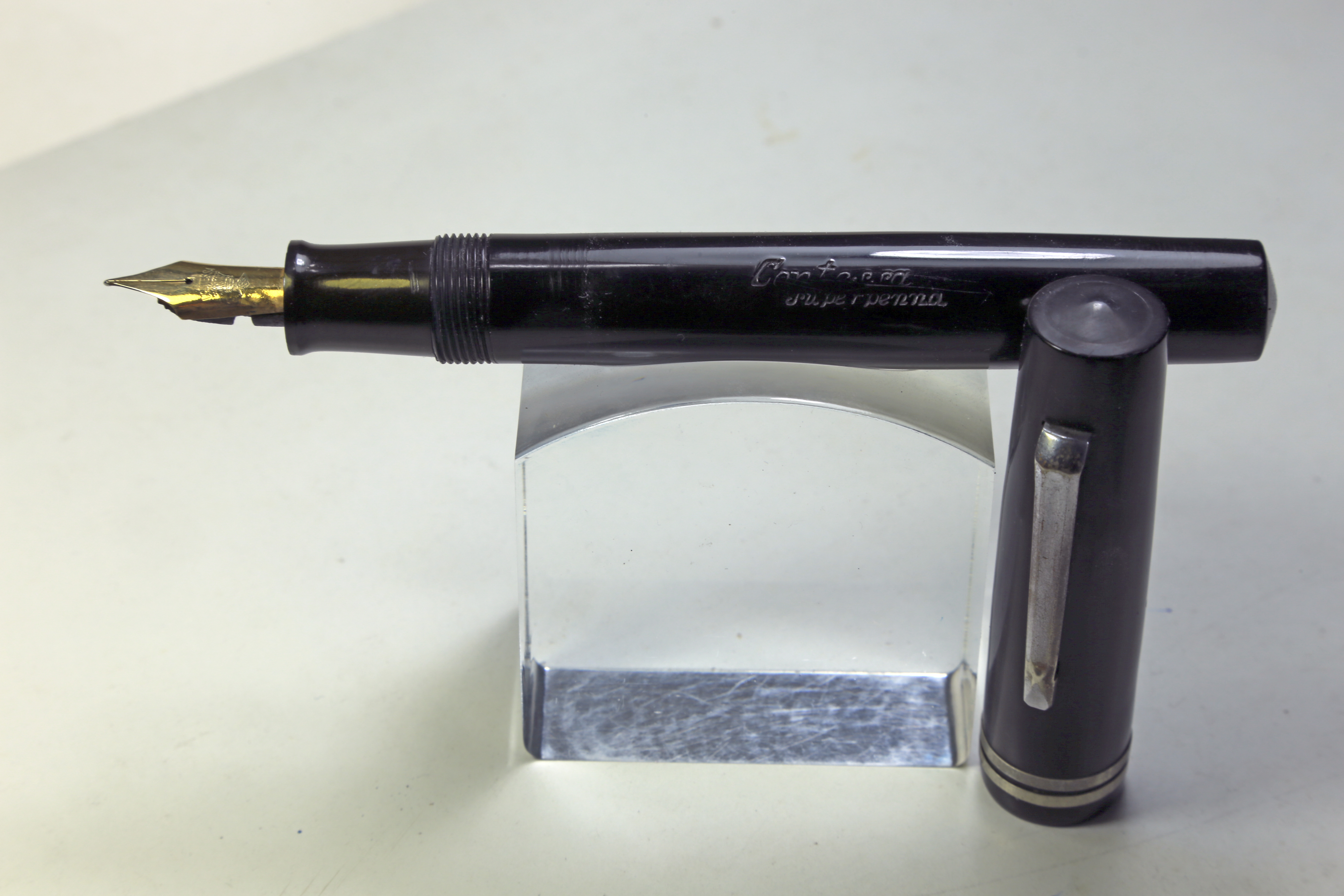 Ho trovato questa penna, marcata Contessa superpenna, spaventosamente grossa (cm. 15,2 chiusa, 15 mm.di diametro sul corpo, quasi 19 mm. di diametro del cappuccio.