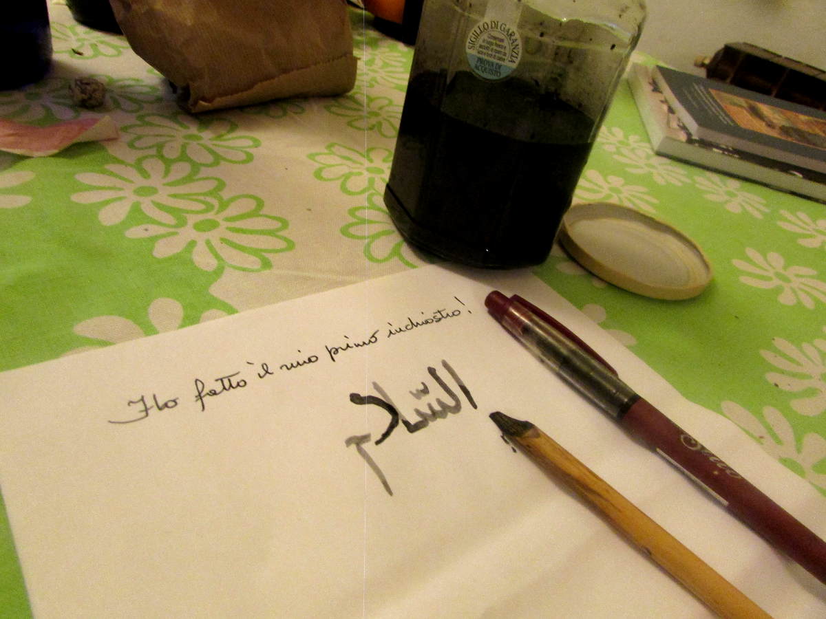 Ciao, complimenti per l'inchiostro autoprodotto (che è sempre una gran soddisfazione) ed anche per la tua grafia! (Quella in italiano, ovviamente, sull'altra... ehm... Mi mancano le basi per potermi esprimere).