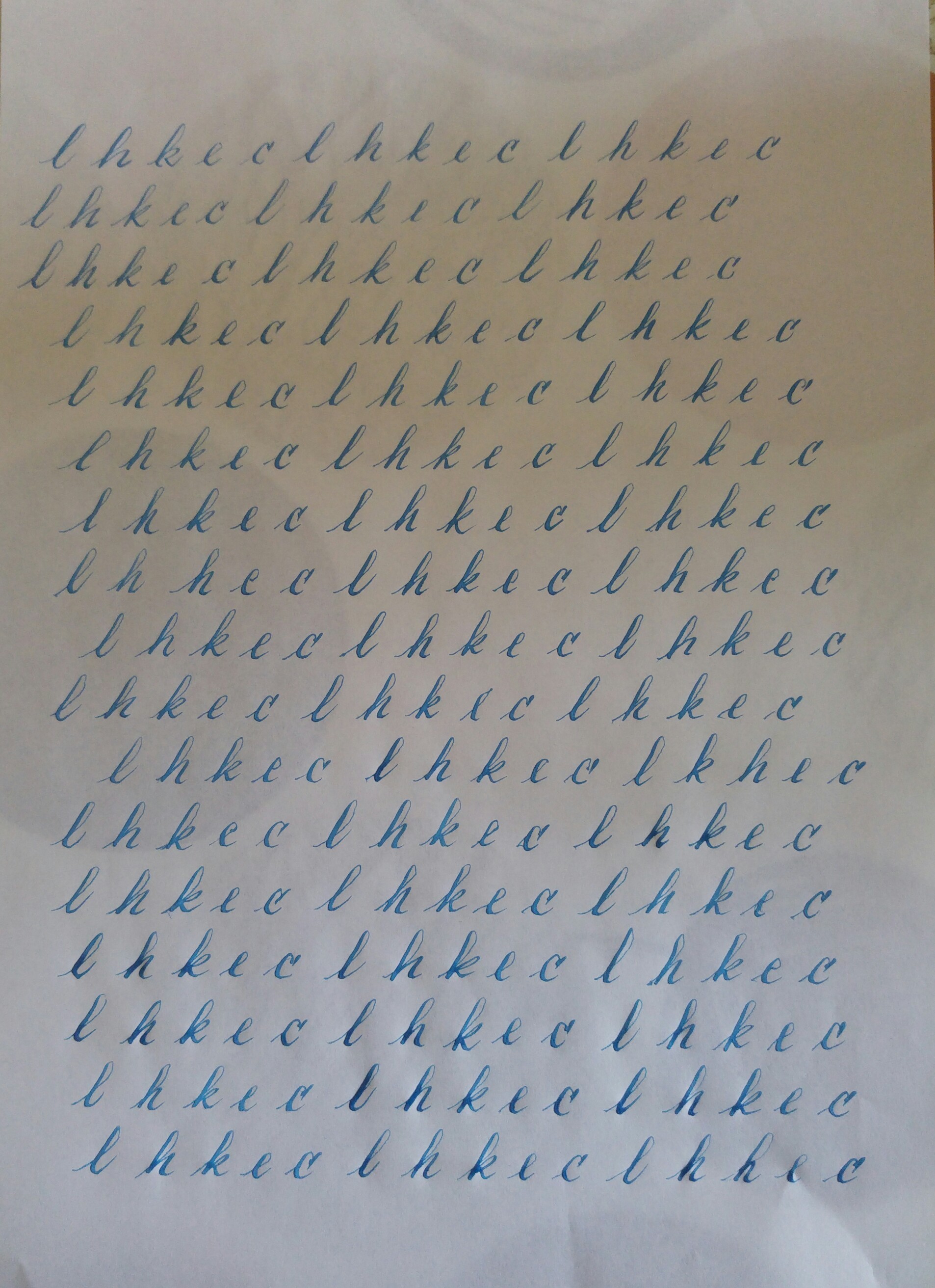 La parte più grossa del tratto deve essere nella parte centrale della "discesa", in queste prove è nella parte bassa (forse devi tenere il foglio più ruotato verso sinistra quando scrivi, e forse sarebbe più comodo con cannuccia obliqua)