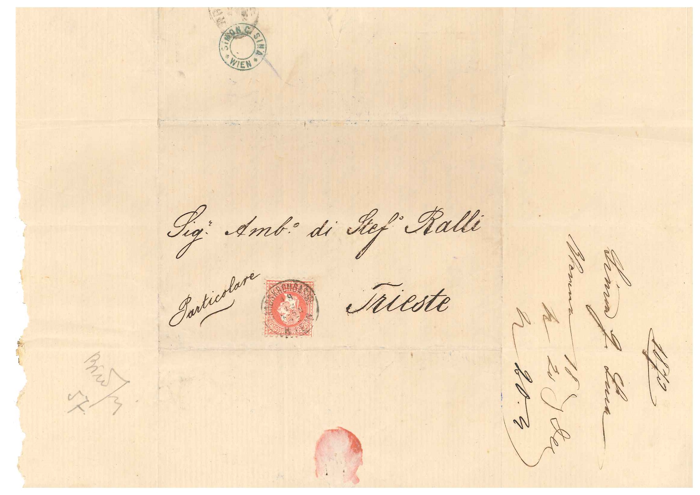 Lettera interessante per il buon italiano, l'ineccepibile corsivo, il perfetto allineamento, e la particolarità che la missiva era senza busta, bensì un piego sigillato con ceralacca, ed anche consegnato con un nome ma senza indirizzo. Doveva essere ben piccola Trieste allora.