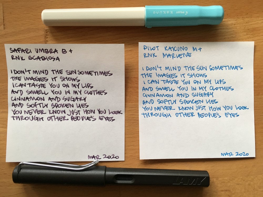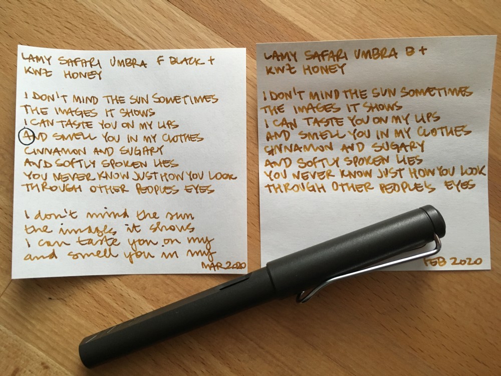con pennino B salta solo su carta liscia, ha shading migliore. shading sensibile al corsivo piu' di altri inchiostri