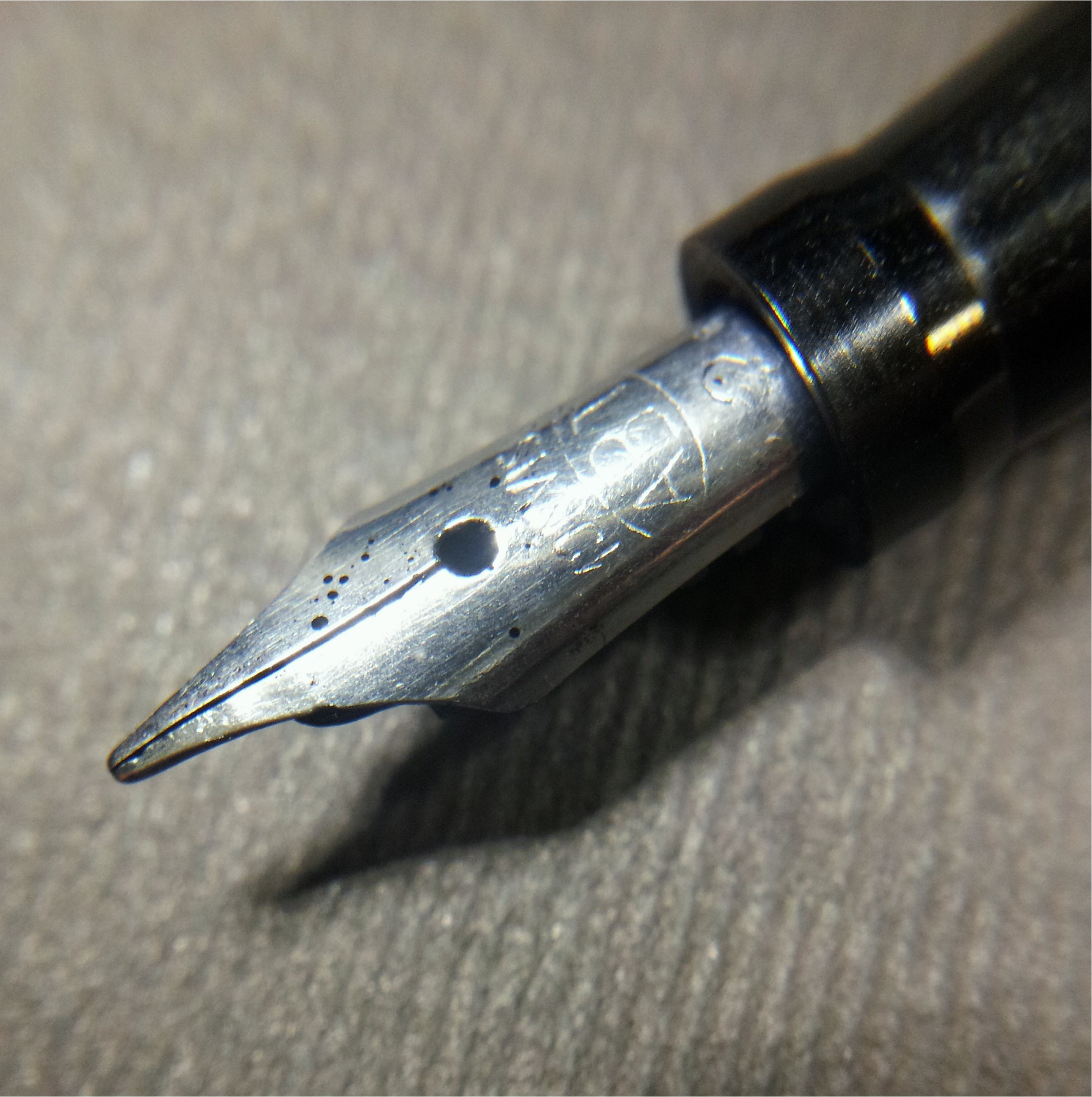 Avevo pensato di cercare un più coerente pennino in oro, ma questo pare così ben affiatato col resto della penna, che sembra un peccato separarli.
