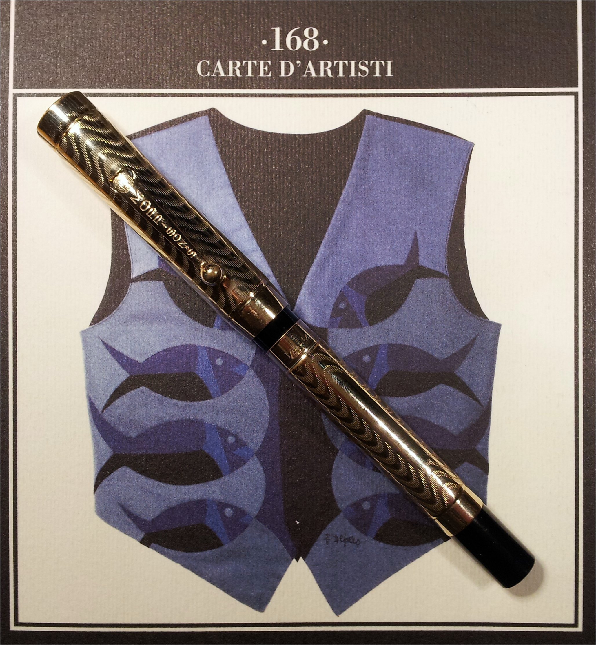 Alla base del fusto è stampigliato il dettaglio relativo alla laminatura: 1/40 - 14KT. Quindi in questa laminatura 1/40 del peso complessivo è oro; 14K significa che la caratura è di 585/1000, ovvero che su 1000 parti di metallo 585 sono di oro puro mentre il resto è composto da altri materiali come argento, rame...