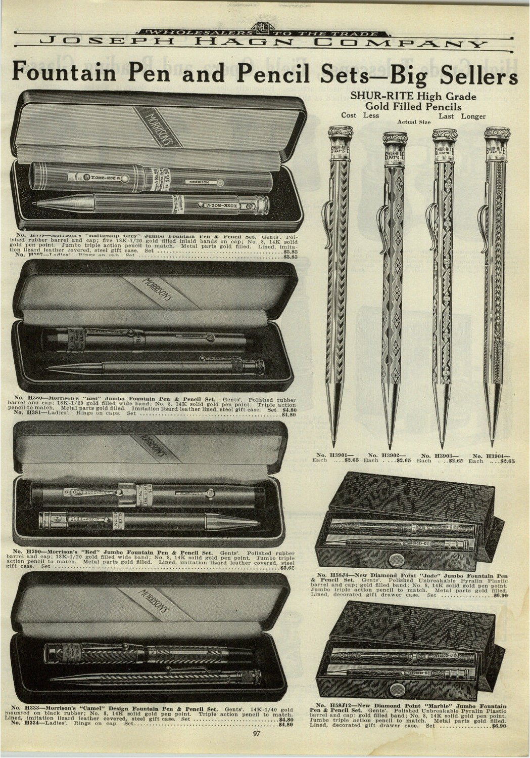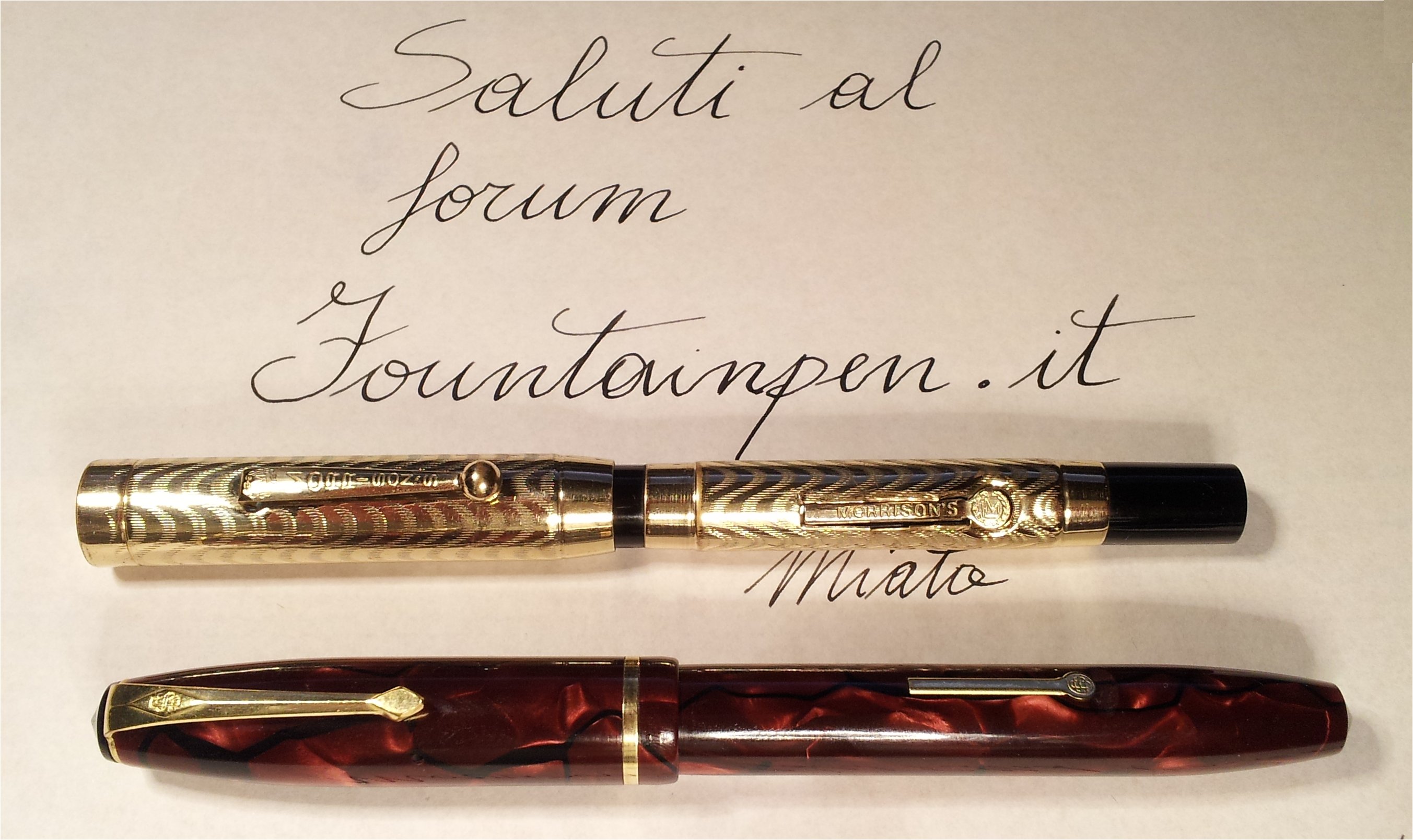 Attingendo al Wiki, scopro che la Morrison’s fu fondata nel 1910 e che per i primi anni si concentrò sulla produzione di penne in ebanite laminate, con caricamento a levetta; nel 1933 iniziò la produzione del modello “Black Beauty”, seguito nel 1942 dalla “Patriot” che è forse da considerarsi l’unico modello di rilievo del marchio. Quindi questa Morrison’s rientra probabilmente nella produzione degli anni ‘10 e ’20.