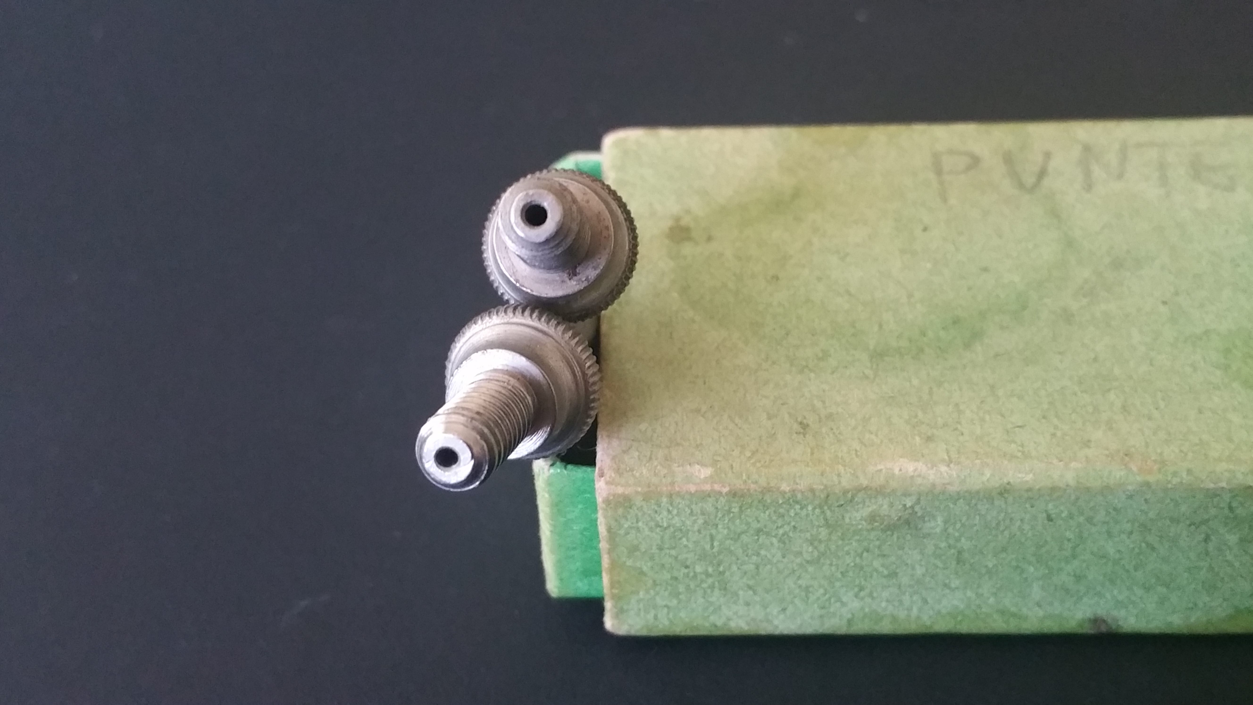 In una scatolina, recante sul coperchio la dicitura, vergata a mano: "Punte in platino", conservata assieme ad un vecchio stiloforo, ho reperito questi due "manufatti" (al momento non ho la più pallida idea di come definirli).