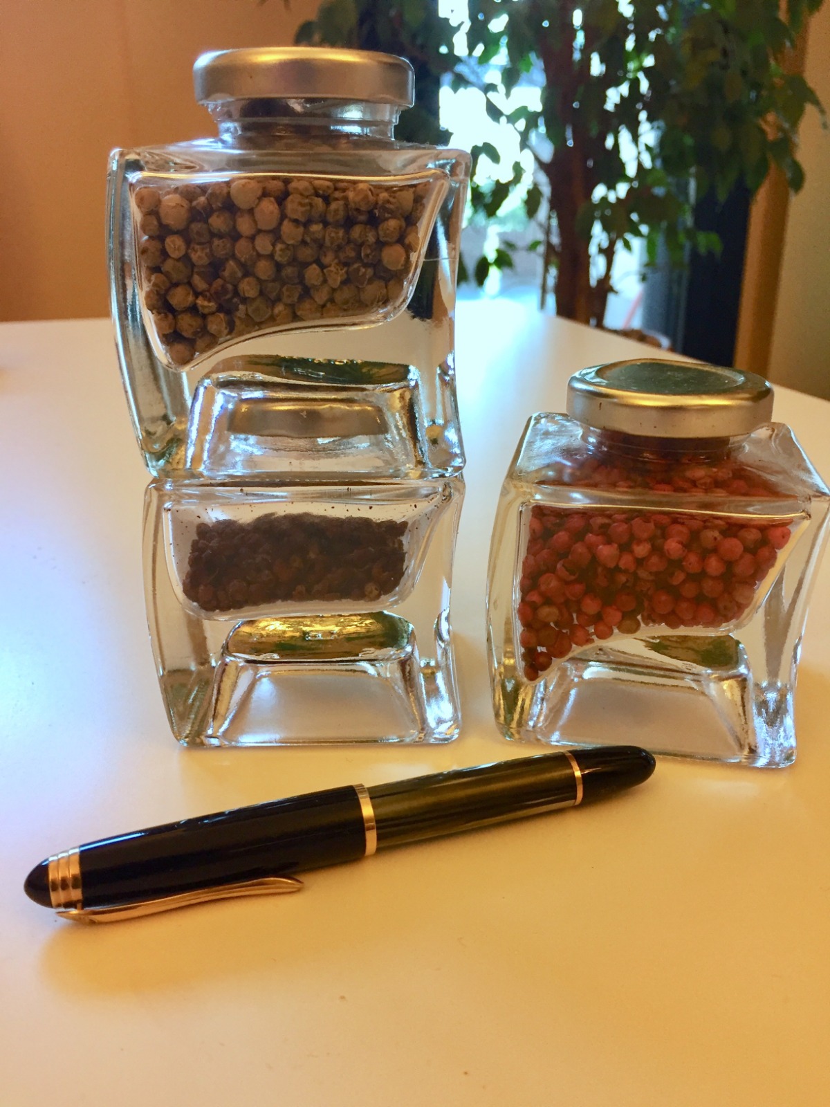 In effetti se la boccetta fosse come questa, sarebbe ottima per raccogliere meglio l'inchiostro quando è quasi finito. Comunque il peso (col pepe) è meno di quanto uno si aspetterebbe.