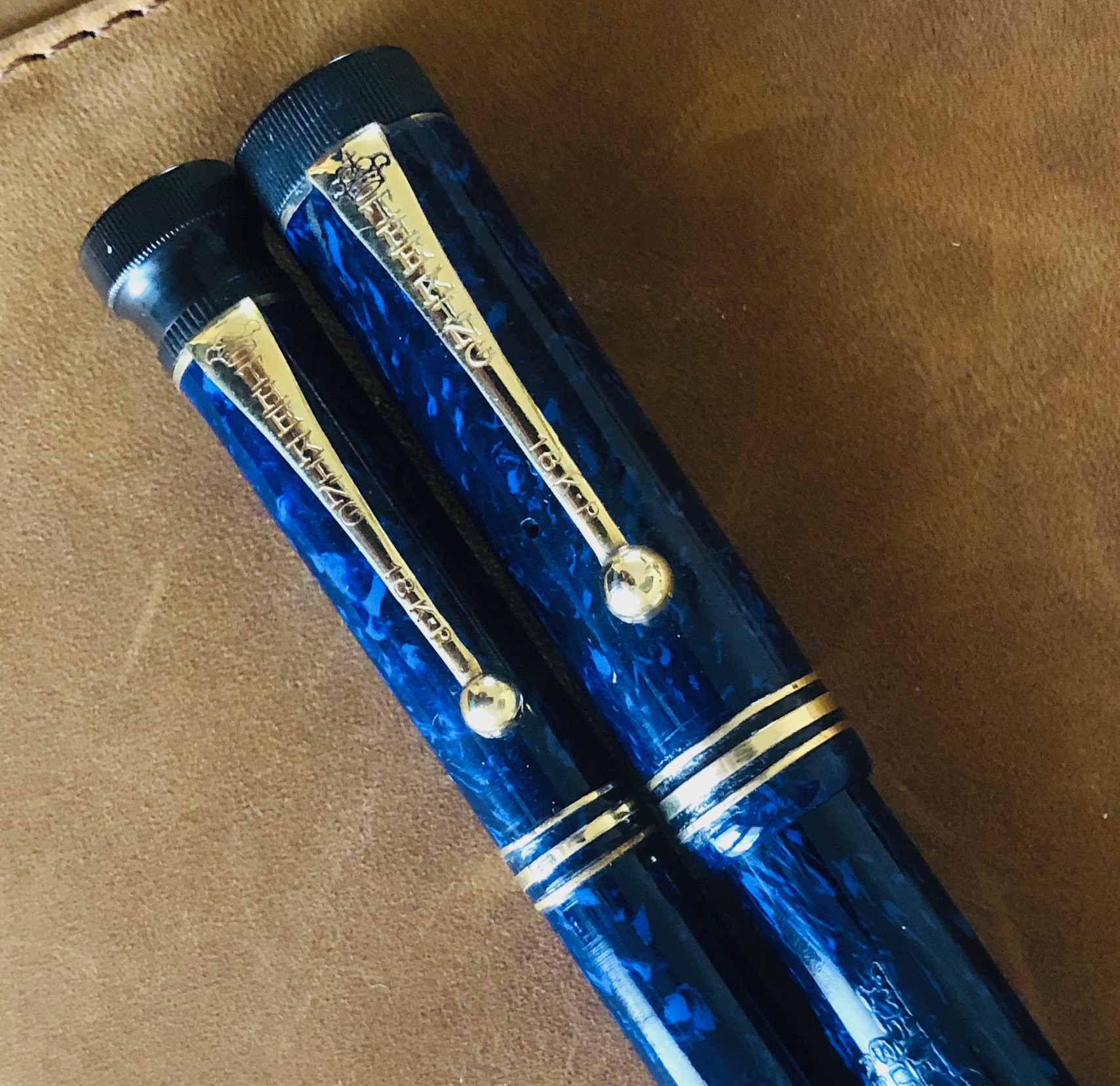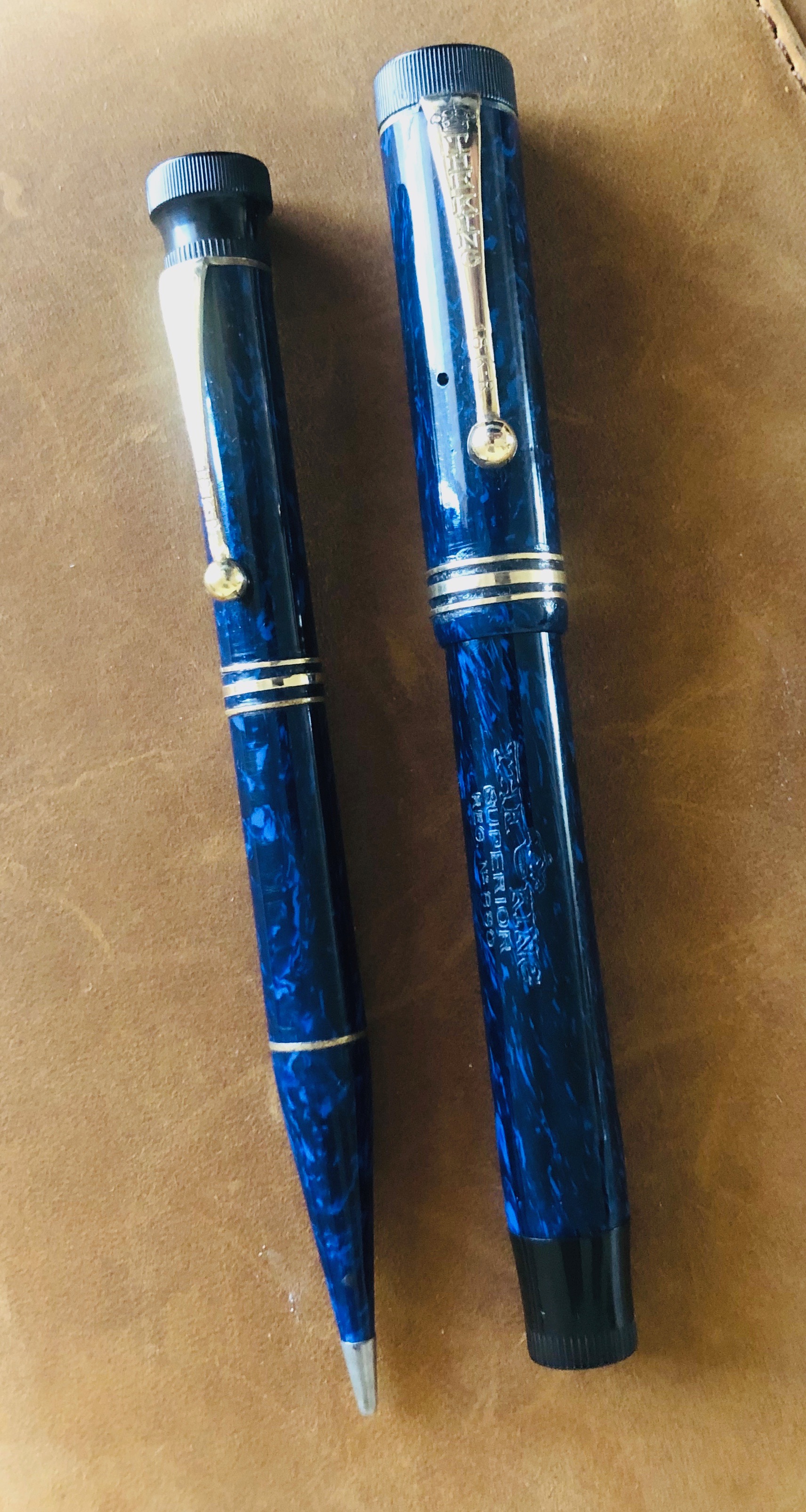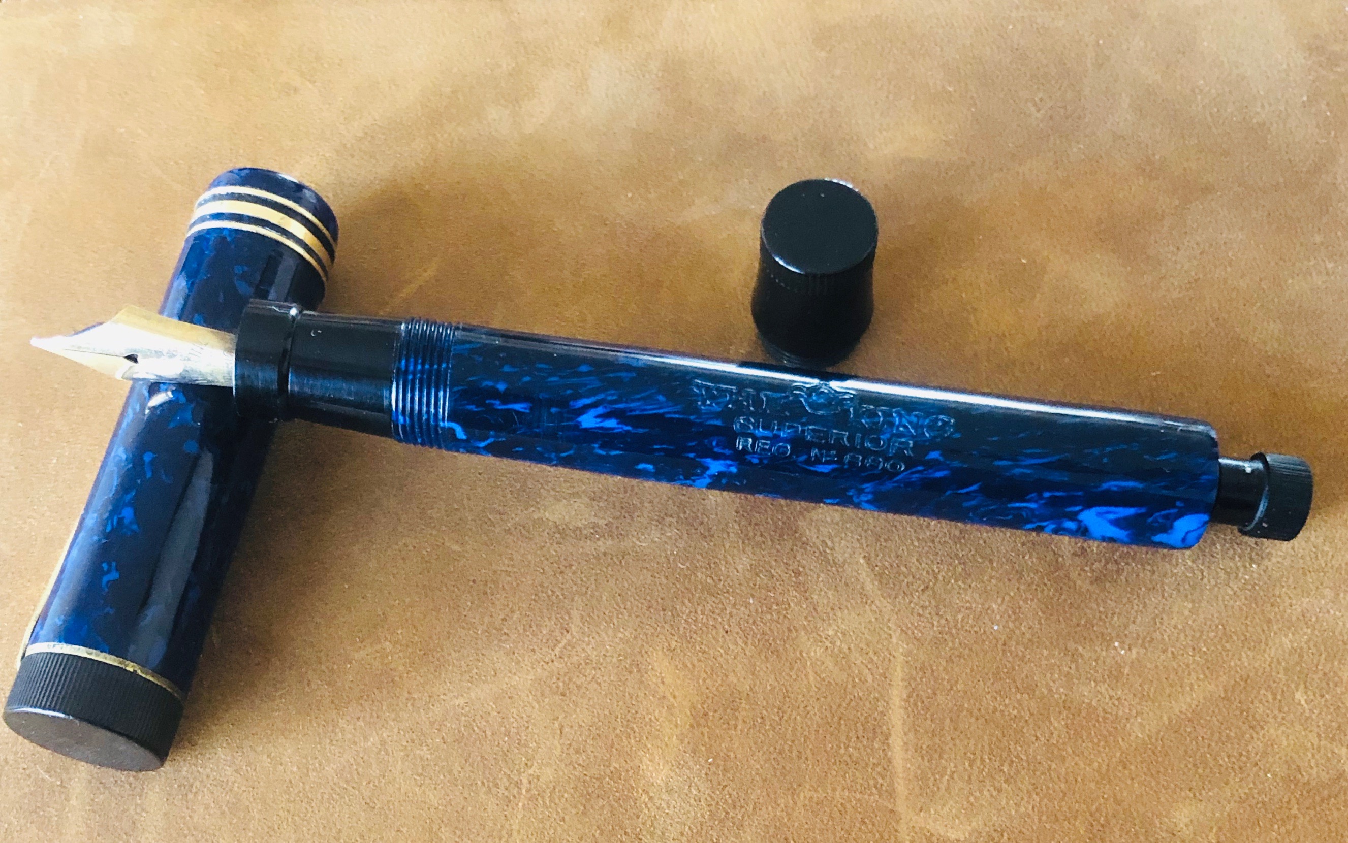 Altro modello SAFIS in pieno stile Duofold ma in celluloide, di un particolare colore blu con venature più chiare.